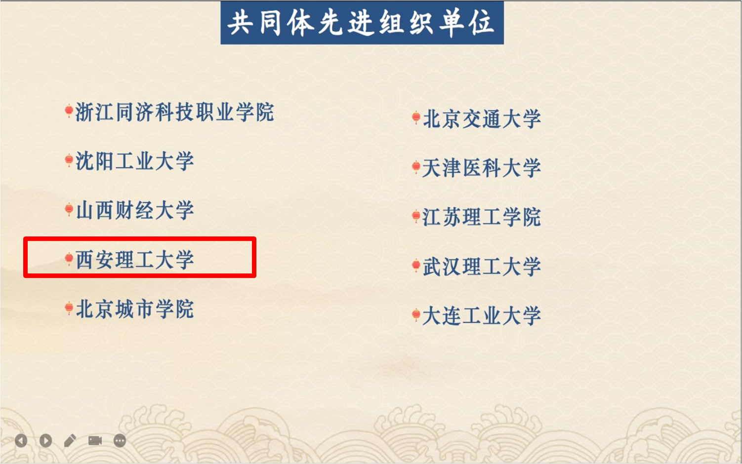 2023年12月30日晚,25+高校经典研读共同体2023年度经典研读总结会议在线上召开。beat365官网12位学员获得合格证书,5位老师被评为优秀学员,学校被授予先进组织单位称号。副校长申烨华及经典研读成员参加会议,图书馆党总支书记宗娜、读者服务部贾二鹏分别作为先进组织单位代表、优秀学员代表在大会发言。