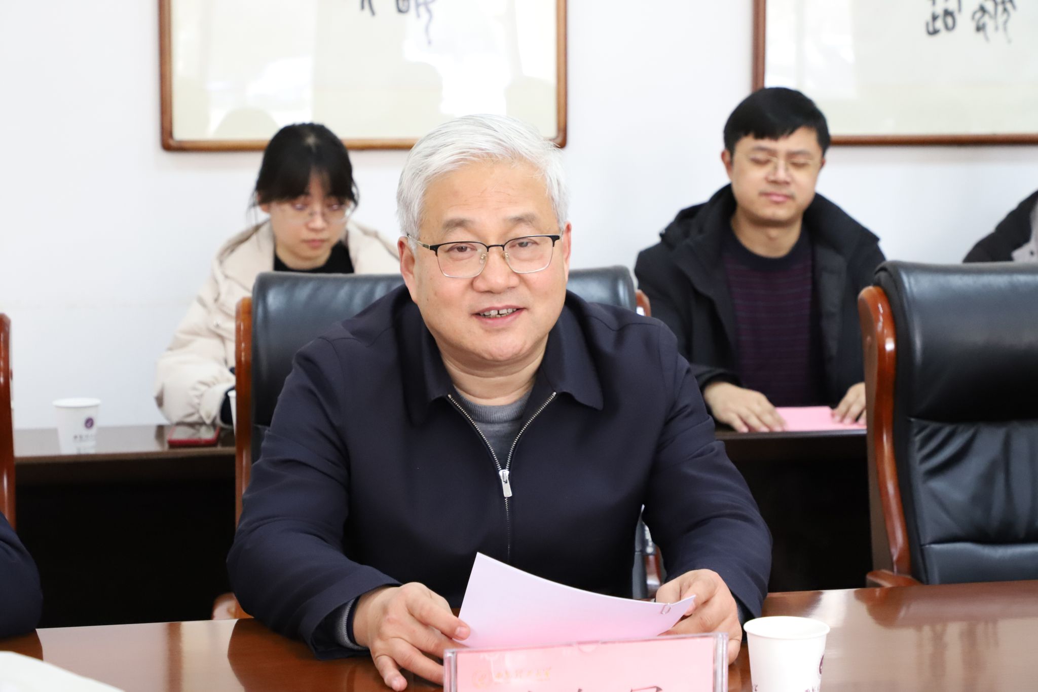 刘云贺与邓铭江院士签署了特聘教授聘用合同并颁发了聘书,张晓晖介绍了邓铭江院士基本情况。西北旱区生态水利国家重点实验室主任罗兴锜教授回顾了邓铭江院士与学校的合作历程。
