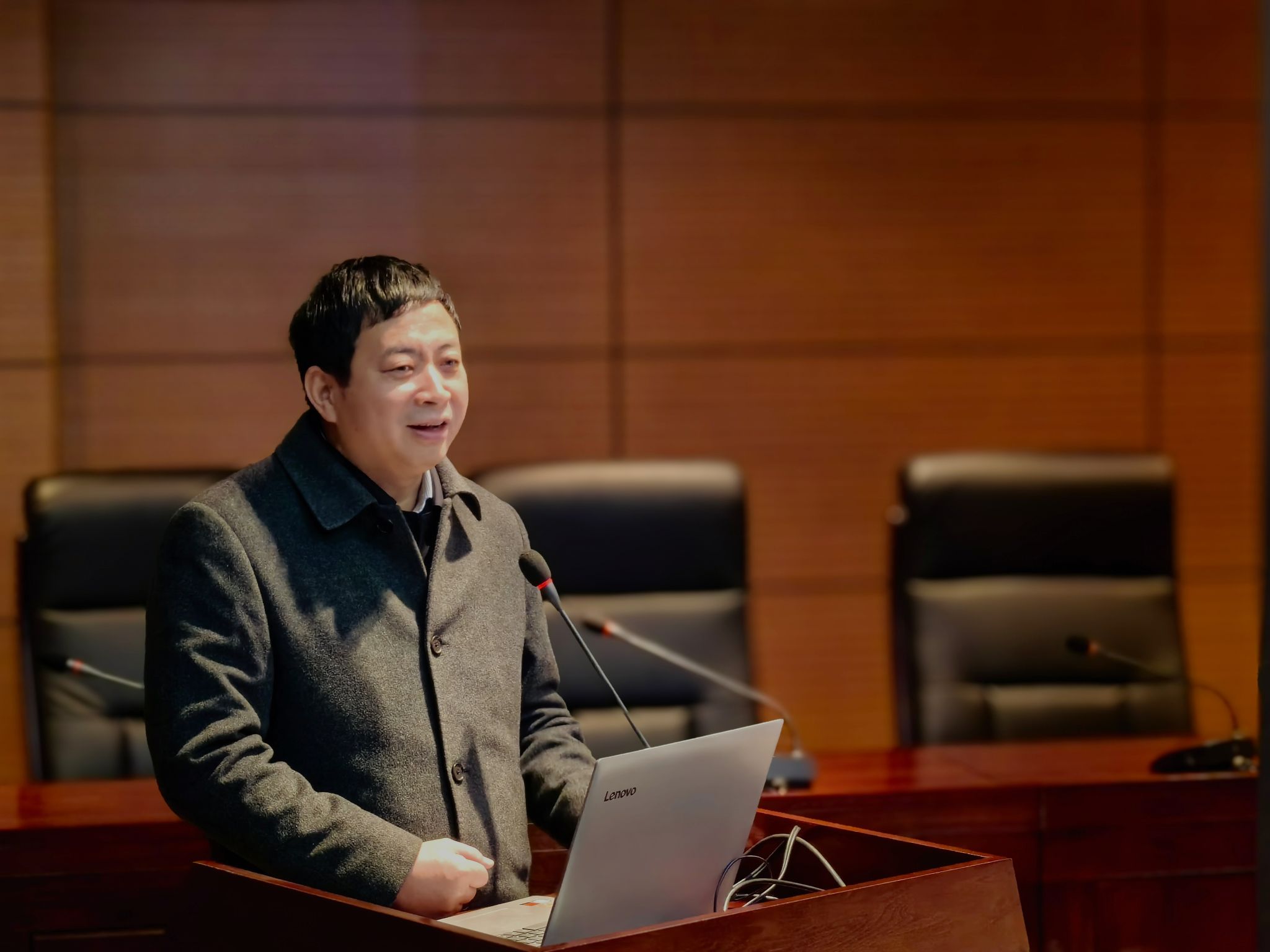 设计公司总经理杨杰作了题为《携手共进 合作共赢 推进设计公司产学研平台高质量发展》的专题报告,分析了当前设计公司面临的形势和发展瓶颈,汇报了设计公司产学研平台建设的目标定位、发展思路和配套措施,解读了设计公司在市场经营、质量管理、业务流程、产学研合作等方面的制度办法,介绍了两院教师与设计公司的多种合作模式和相应激励机制,希望两院师生积极参与打造设计公司产学研实习实践平台、成果转化应用平台、科研创新平台、教育培训平台和就业创业平台。