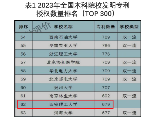 全国本科院校2023年发明专利授权数量统计数据显示,beat365官网以679件授权发明专利排名全国本科院校第62位,位列在陕高校第4位。