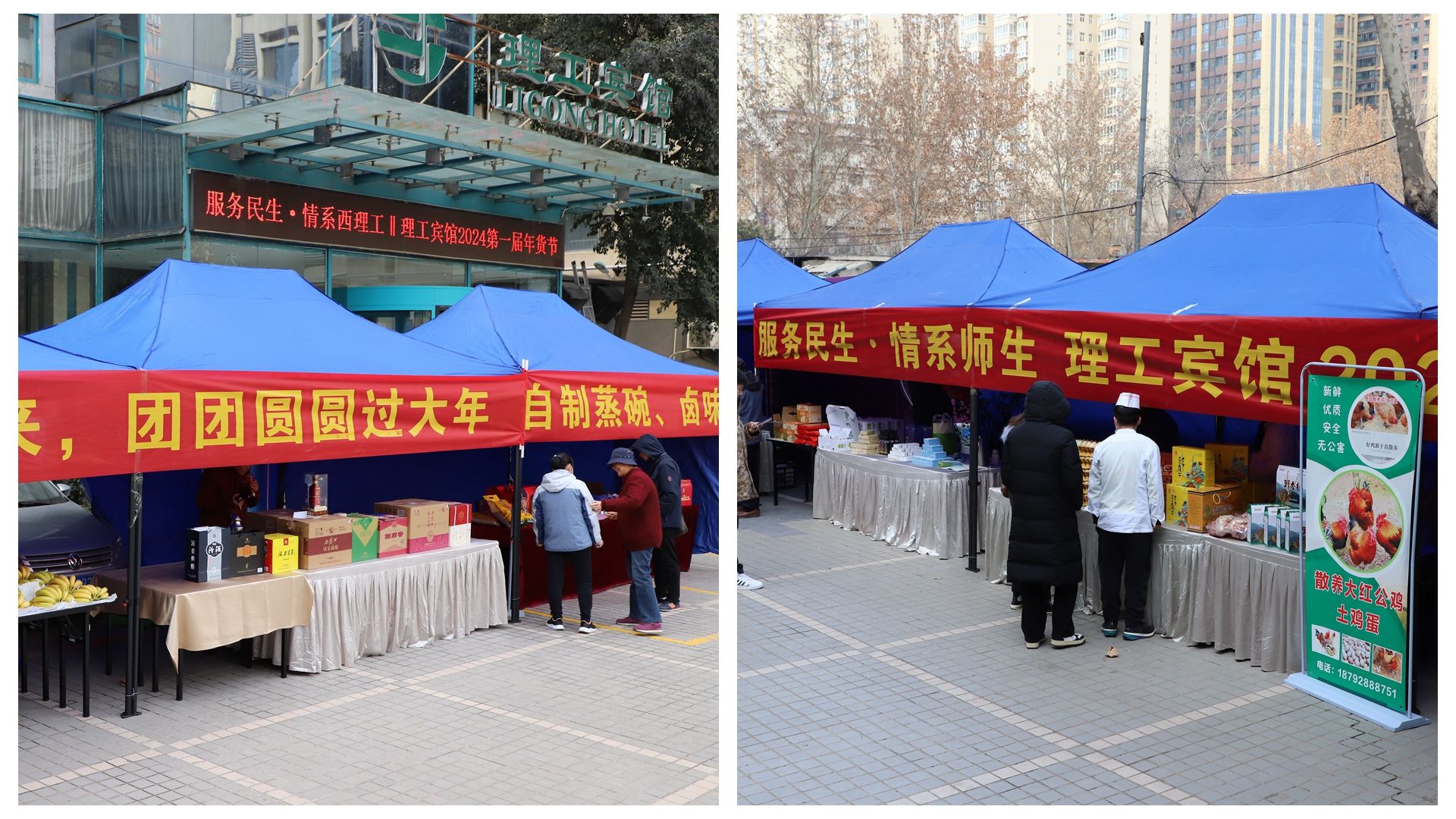 据悉,为做好此次年货供应活动,理工宾馆多次召开专门会议,部署活动准备工作、对供货商严格要求、层层考察筛选;组织专人进行市场调研,确保商品优质优价;积极与供货商对接,确保货源充足;提前组织搭建帐篷,让商户早早就将各类商品摆放好供大家选择。