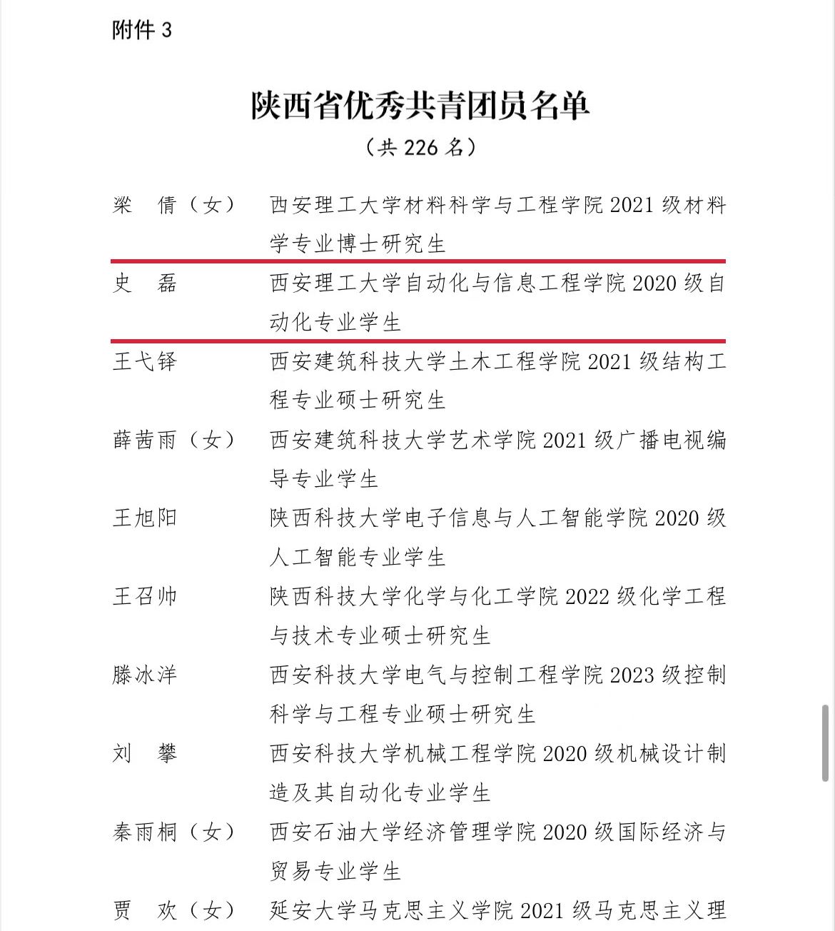 近日,共青团陕西省委印发《关于表彰2022-2023年度陕西省五四红旗团委、陕西省五四红旗团支部、陕西省优秀共青团员、陕西省优秀共青团干部的决定》(陕团发[2024]2号)文件,beat365官网团委荣获“陕西省五四红旗团委”称号。此外,材料科学与工程学院2021级博士研究生梁倩、自动化与信息工程学院2020级本科生史磊荣获“陕西省优秀共青团员”称号。