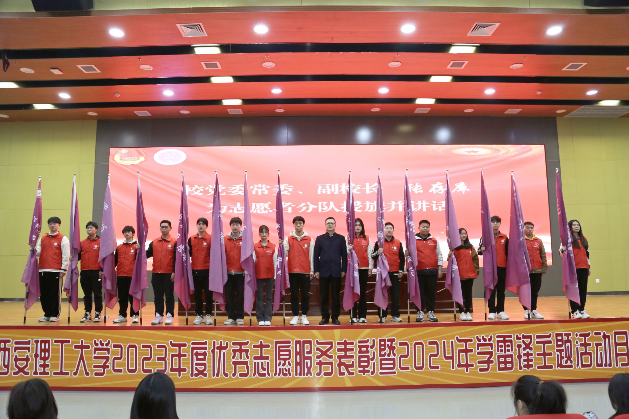 学雷锋活动示范点负责人、岗位学雷锋标兵、优秀志愿者代表、优秀志愿者标兵代表、优秀志愿服务组织负责人、志愿服务优秀指导教师,保卫处相关负责人、后勤处相关负责人,各学院团委书记和志愿者代表参加启动仪式。