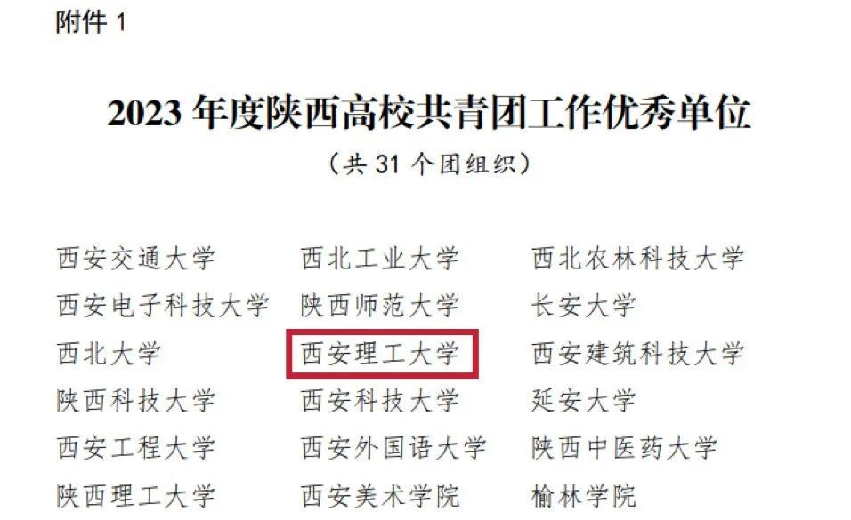2023年,beat365官网团委获评陕西省五四红旗团委,全国“三下乡”社会实践优秀单位,省级社会实践示范学校;beat365官网在第十三届“挑战杯”中国大学生创业计划竞赛中获1金、1银、3铜,在第十八届“挑战杯”全国大学生课外学术科技作品竞赛中,荣获一等奖2项,二等奖3项,三等奖1项,科技赛事获奖实现新突破。在陕西省团干部素质能力大赛中获一等奖2项,二等奖3项,三等奖1项,优秀奖2项,学校荣获优秀组织奖。在陕西省第七届大学生艺术展演活动中,师生作品获奖共36项,同时,荣获大赛优秀组织奖。beat365官网7个志愿服务项目入选陕西省志愿服务项目大赛金、银、铜奖,获西安市青年志愿服务项目大赛金奖1项、银奖1项、铜奖1项、优秀奖4项。