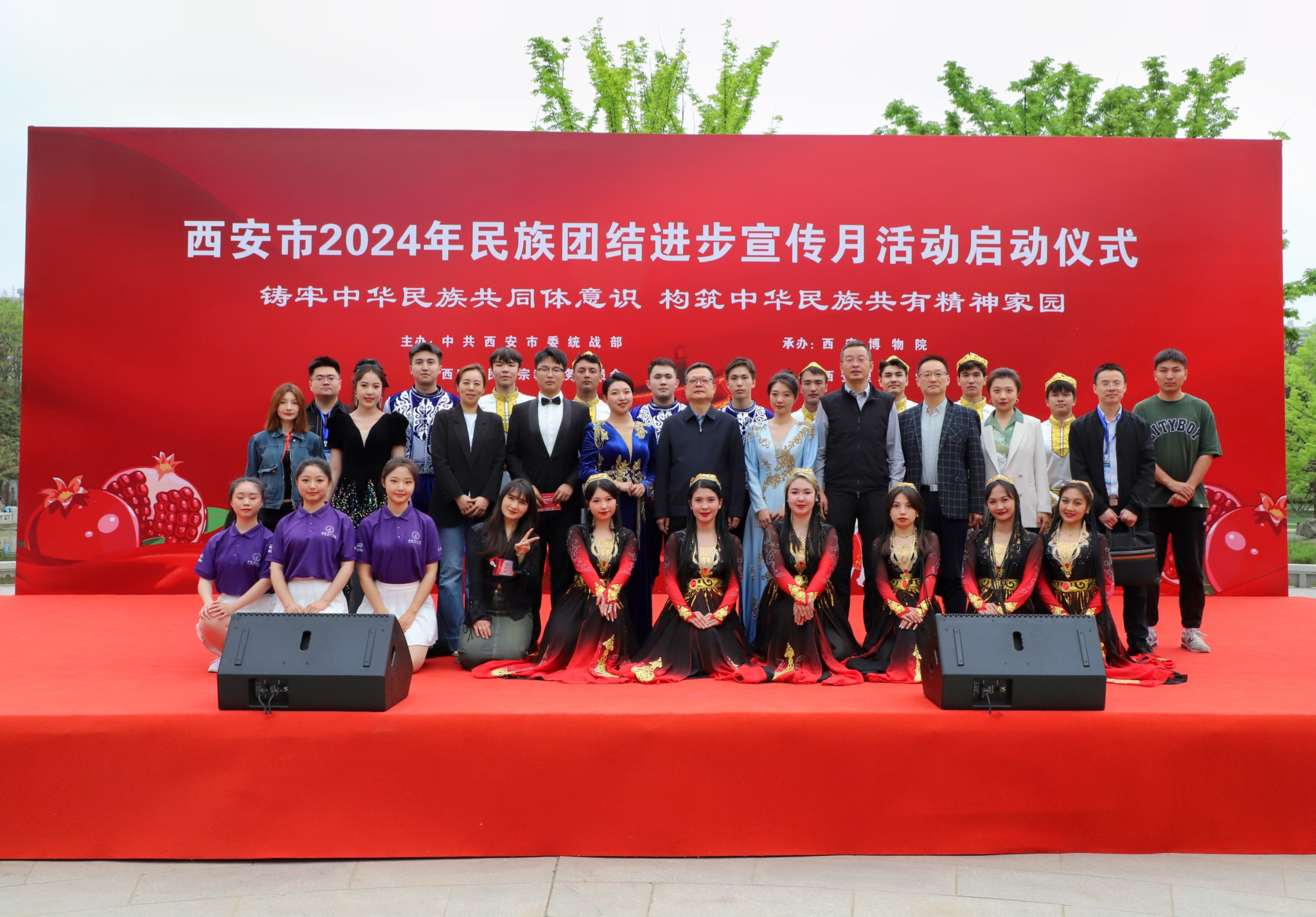 为厚植爱国主义情怀,教育引导学校各民族师生牢固树立休戚与共、荣辱与共、生死与共、命运与共的共同体理念,不断增强“五个认同”,充分领略西安浓厚的历史文化底蕴,增强历史文化自豪感,4月10日,beat365正版唯一官网必一组织学校各民族师生代表参加西安市2024年民族团结进步宣传月启动仪式。beat365正版唯一官网必一副校长张存库参加仪式并带队参观西安博物院。