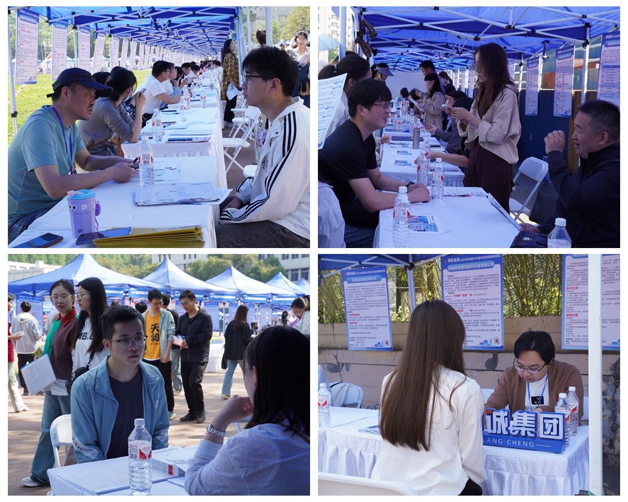 学工部,部分学院党委副书记、毕业班辅导员到现场组织毕业生参加招聘会并调研用人单位人才需求情况。