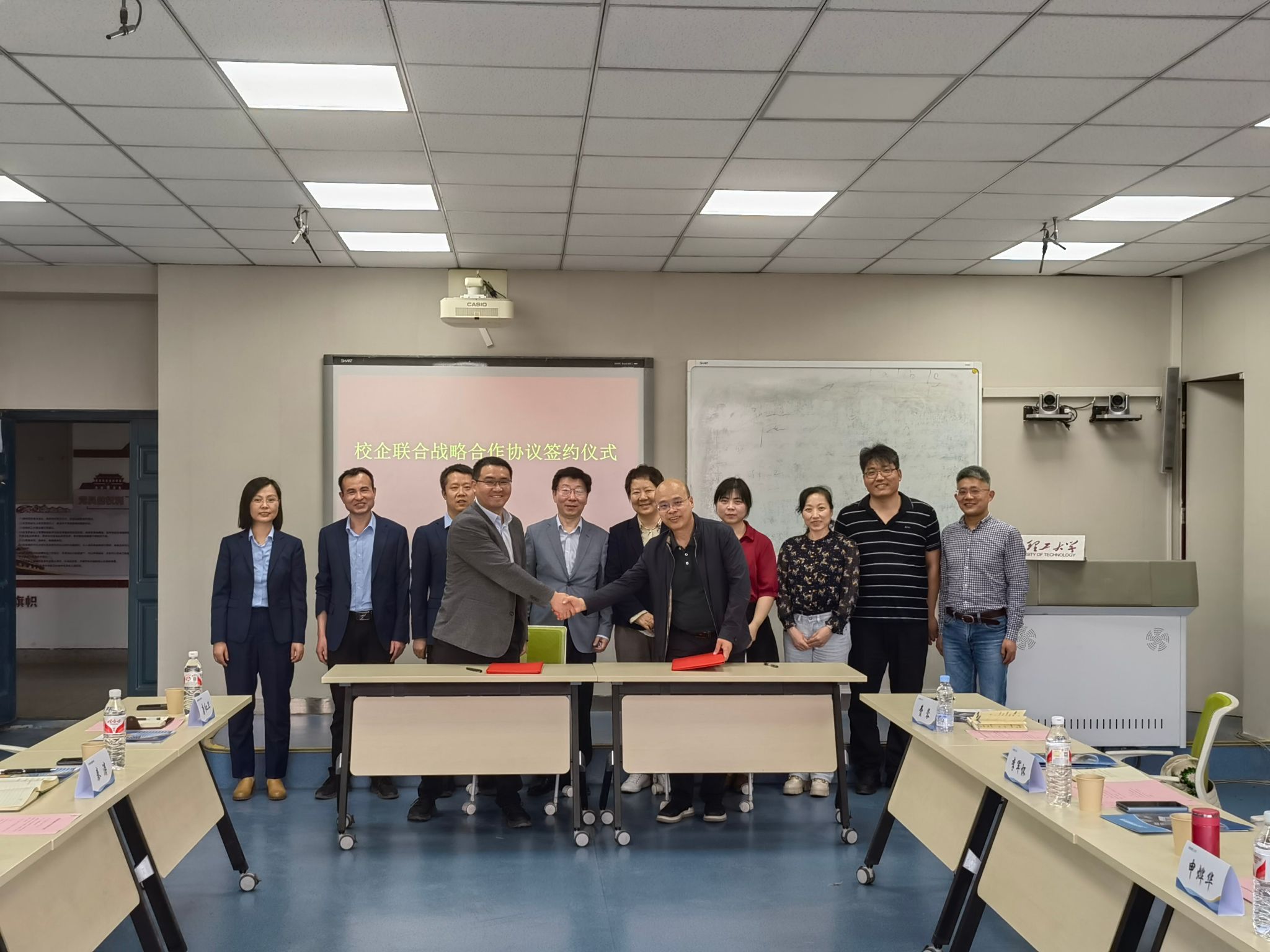 4月18日下午,beat365官网计算机科学与工程学院与西北有色金属研究院西安莱特信息工程有限公司校企合作签约仪式在金花校区举行。副校长申烨华,计算机科学与工程学院院长李军怀,副院长费蓉、金海燕,计科系主任宋霄罡,教师代表吕志勇,西北有色金属研究院党委副书记郑树军,莱特信息董事长秦涛,党支部书记唐红卫,副总经理付耀锋,办公室主任王凤玲等出席合作交流会和签约仪式。李军怀主持签约仪式。