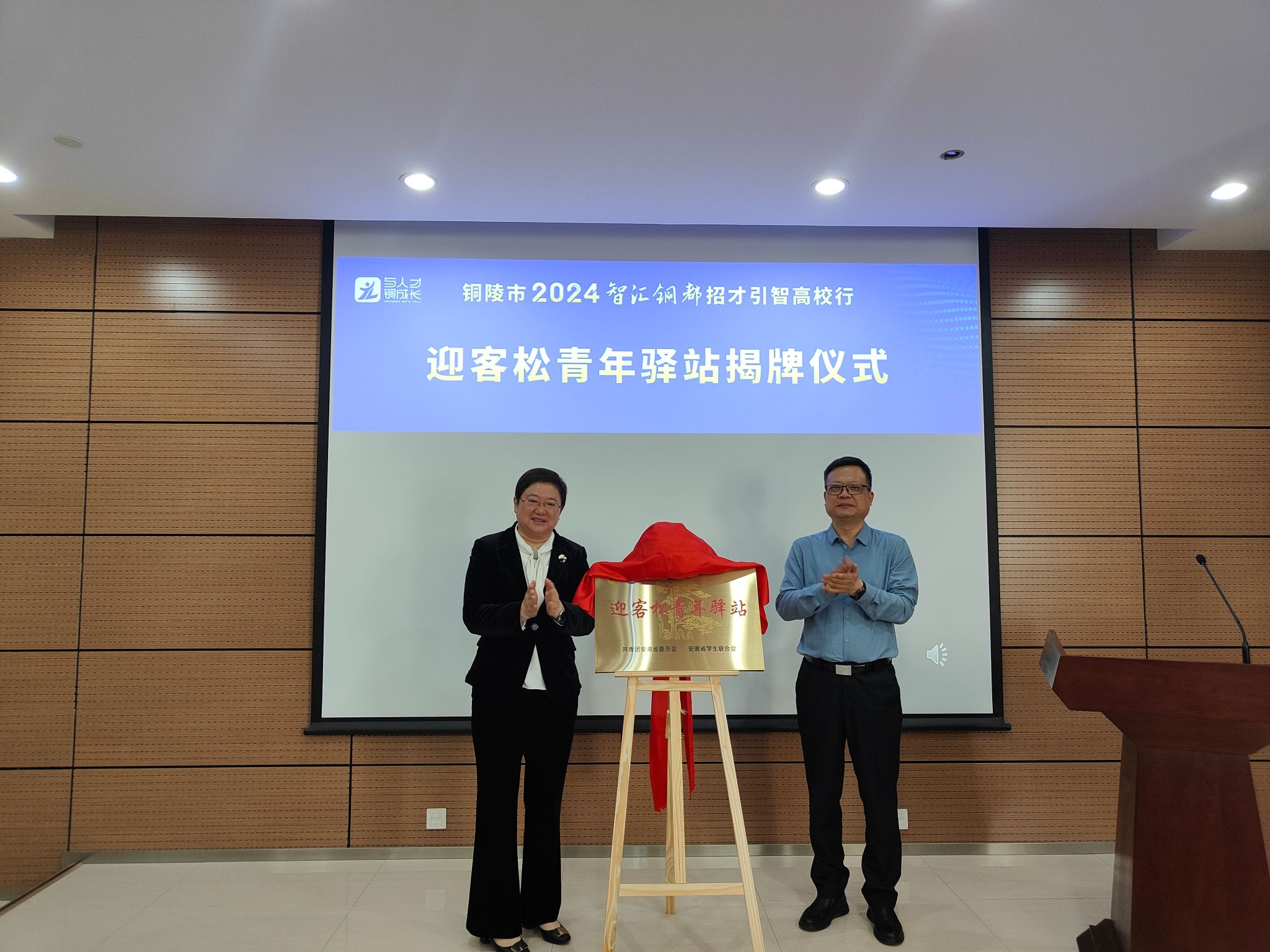 会上,张存库与昌红梅共同为“迎客松青年驿站”揭牌。铜陵市经信局党组书记李勇作新材料产业链发展情况及岗位需求推介;共青团铜陵市委员会书记刘宬作青年友好型城市情况推介;铜陵市委组织部副部长都斌作人才政策推介;铜陵市经济技术开发区和狮子山高新区作人才需求宣讲。
