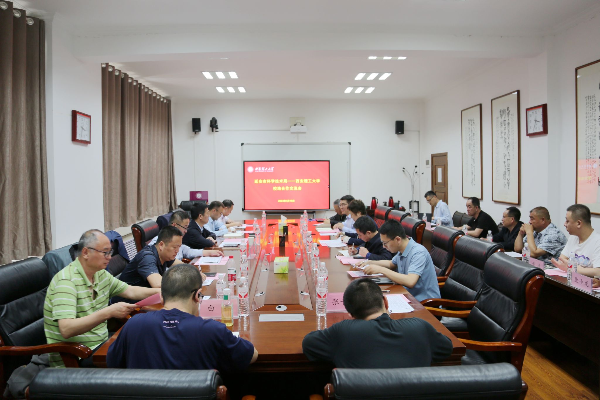 学校科技处、水利水电学院、材料科学与工程学院、机械与精密仪器工程学院、计算机科学与工程学院、品牌与高质量发展研究中心教师代表,延安市科技局、吴起县人民政府、秦创原(延安)创新促进中心、宝塔区科技局、黄陵高新区、志丹县科技开发中心等工作人员以及相关企业家参加了座谈会。