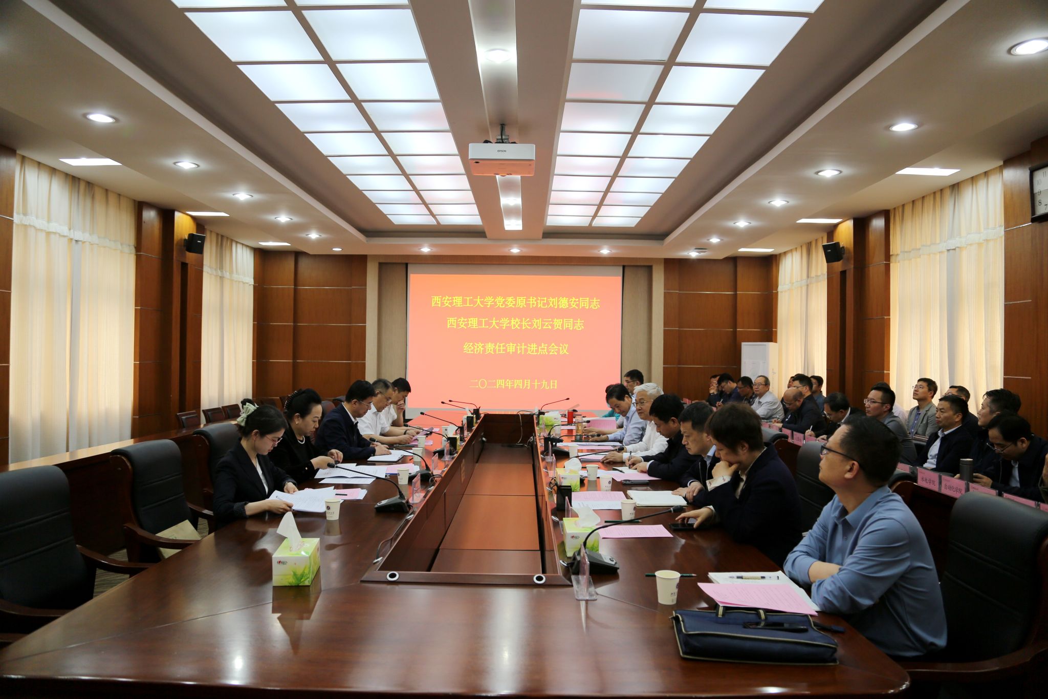 4月19日下午,中共陕西省委审计委员会办公室、陕西省审计厅在beat365官网101会议室组织召开校领导经济责任履行情况审计进点会议,审计组组长、陕西省审计厅党组成员、副厅长张文耀,校党委书记李智军,校长刘云贺,校党委原书记刘德安,审计组成员,校领导班子成员,学校各单位主要负责人参加会议。会议由陕西省审计厅经济执法处处长马团结主持。