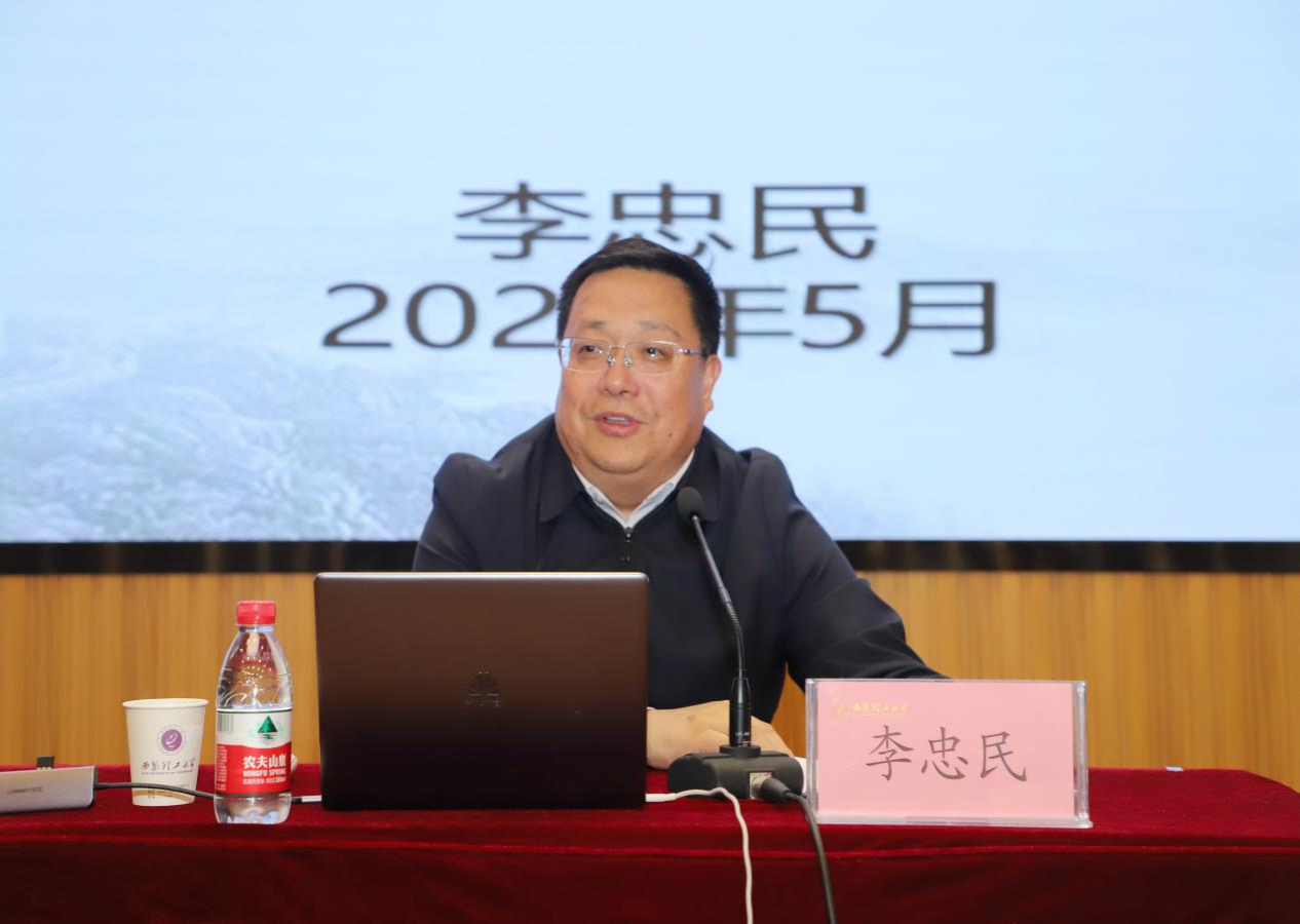 讲座邀请省政协副主席、民建省委会主委、省中华职教社主任李忠民作《深刻认识和把握新质生产力》的专题辅导报告。民建省委会秘书长宋杨,校党委书记李智军、校长刘云贺等全体校领导出席本次活动。讲座由团省委副书记李臻主持。