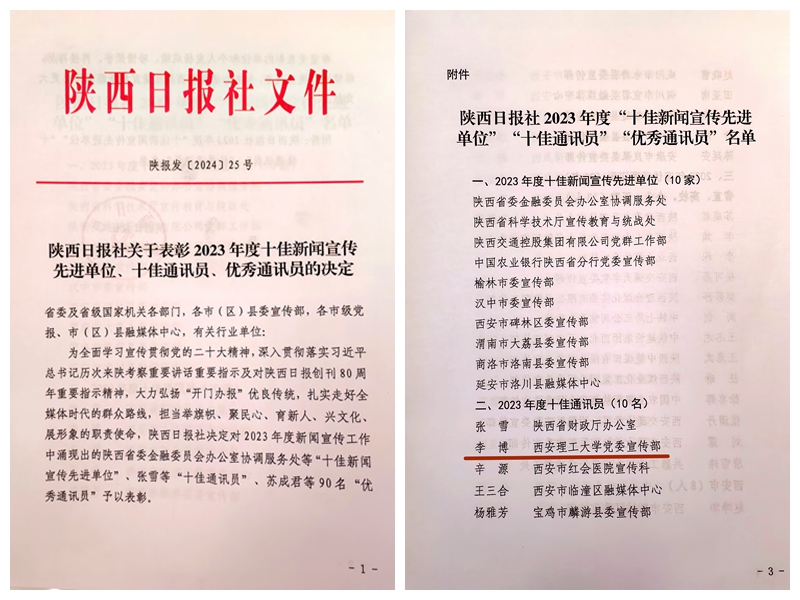 2023年,该同志积极参与陕西日报社媒体联动和新闻策划,先后收集beat365正版唯一官网必一主题教育、创新团队、三项改革、教育教学、就业服务、国际留学生等相关选题新闻线索216条,其中121条新闻线索被陕西日报及三秦都市报采用。同时积极配合陕西日报社策划了“为创新人才成长提供沃土”“二十大精神在三秦”“主题教育一线行”““推动科技成果转化应用”“三项改革落地生根”等选题工作,与陕西日报、三秦都市报记者先后实地采访60余次,以通讯员身份在陕西日报纸质版发稿16篇,在群众新闻网(客户端)、三秦都市报等子报刊网发稿51篇,总计传播度达到100万次以上。该同志还先后在《光明日报》《中国教育报(网)》《科技日报》《中国青年报》等发表多篇新闻报道或评论作品,人民网、光明网、西部网等多次全文刊登或转发,引起较大社会反响。