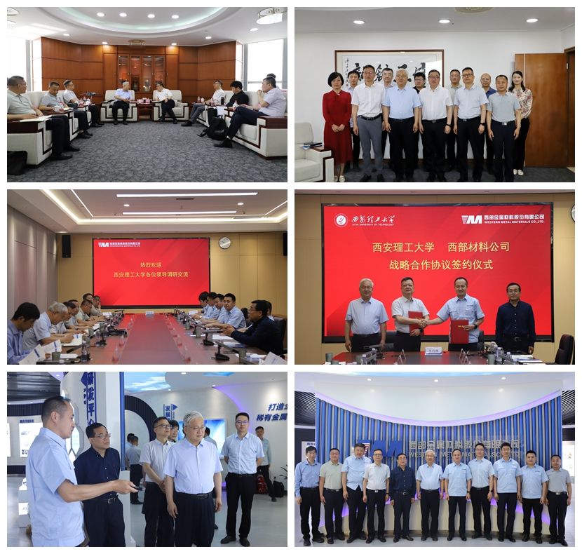 在西部金属材料股份有限公司,李智军一行参观了西部材料展室和西部钛业责任有限公司熔炼二厂,详细了解了企业发展历史、科技创新和生产加工等情况,与公司党委书记、董事长杨延安,党委副书记、总经理康彦等座谈交流。李智军对西部材料以国家战略需求为导向,不断突破技术瓶颈,推动材料行业高质量发展所取得的成就和成果给予高度评价,并对西部材料在学校建设和发展中提供的支持表示感谢。他介绍了学校的发展情况,希望双方不断深化合作内容,进一步加强产学研融合,持续推进尖端技术研究、科技成果转化、高层次人才联合培养、学生高质量就业等工作,搭建合作共赢桥梁。