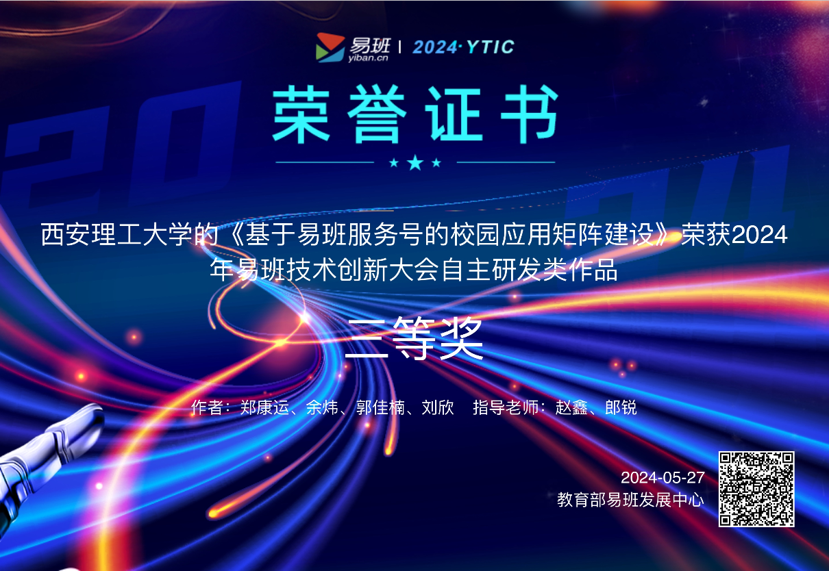 全国高校易班技术创新大会由教育部易班发展中心主办。本届比赛共有来自全国100余所高校的300余名指导老师及学生技术骨干参与。活动设置了“创新创意类”和“自主研发类”两个作品赛道,设一等奖1项、二等奖5项、三等奖10项,优秀奖若干项。专家组从作品的实用性、创意性及科技性等方面入手,对各高校的优秀研发作品和创新创意进行评审。