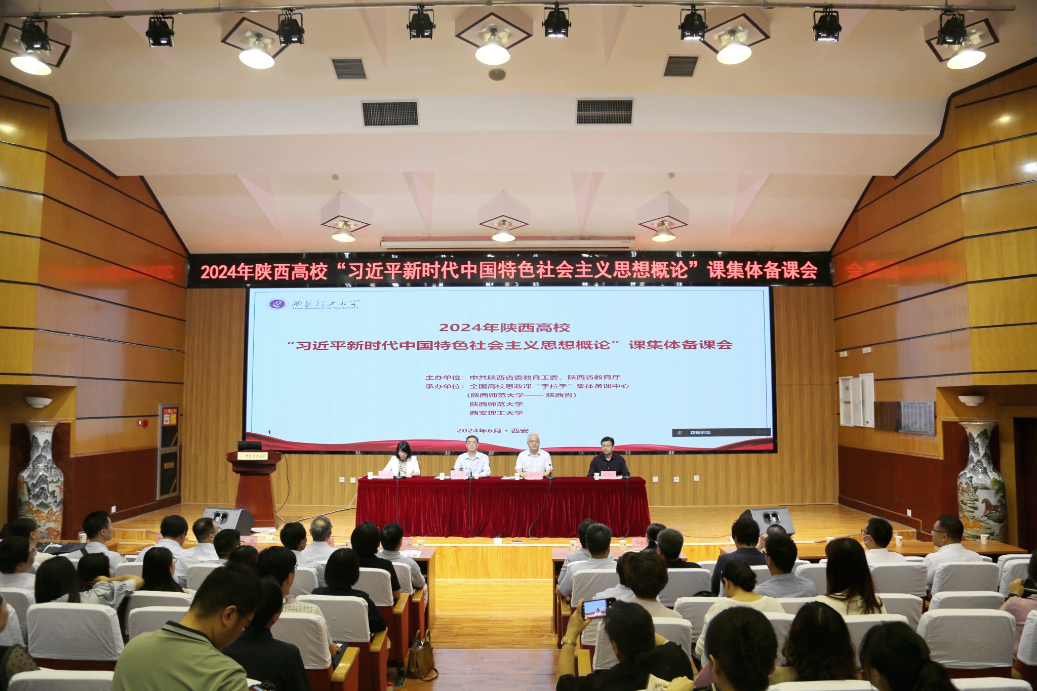 6月7日,2024年陕西高校“习近平新时代中国特色社会主义思想概论”课集体备课会在beat365官网图书馆报告厅举办,并通过全国高校思政课“手拉手”集体备课中心云上大练兵平台同步直播。本次集体备课会由中共陕西省委教育工委、陕西省教育厅主办,全国高校思政课“手拉手”集体备课中心(陕西师范大学─陕西省)、陕西师范大学、beat365正版唯一官网必一承办。