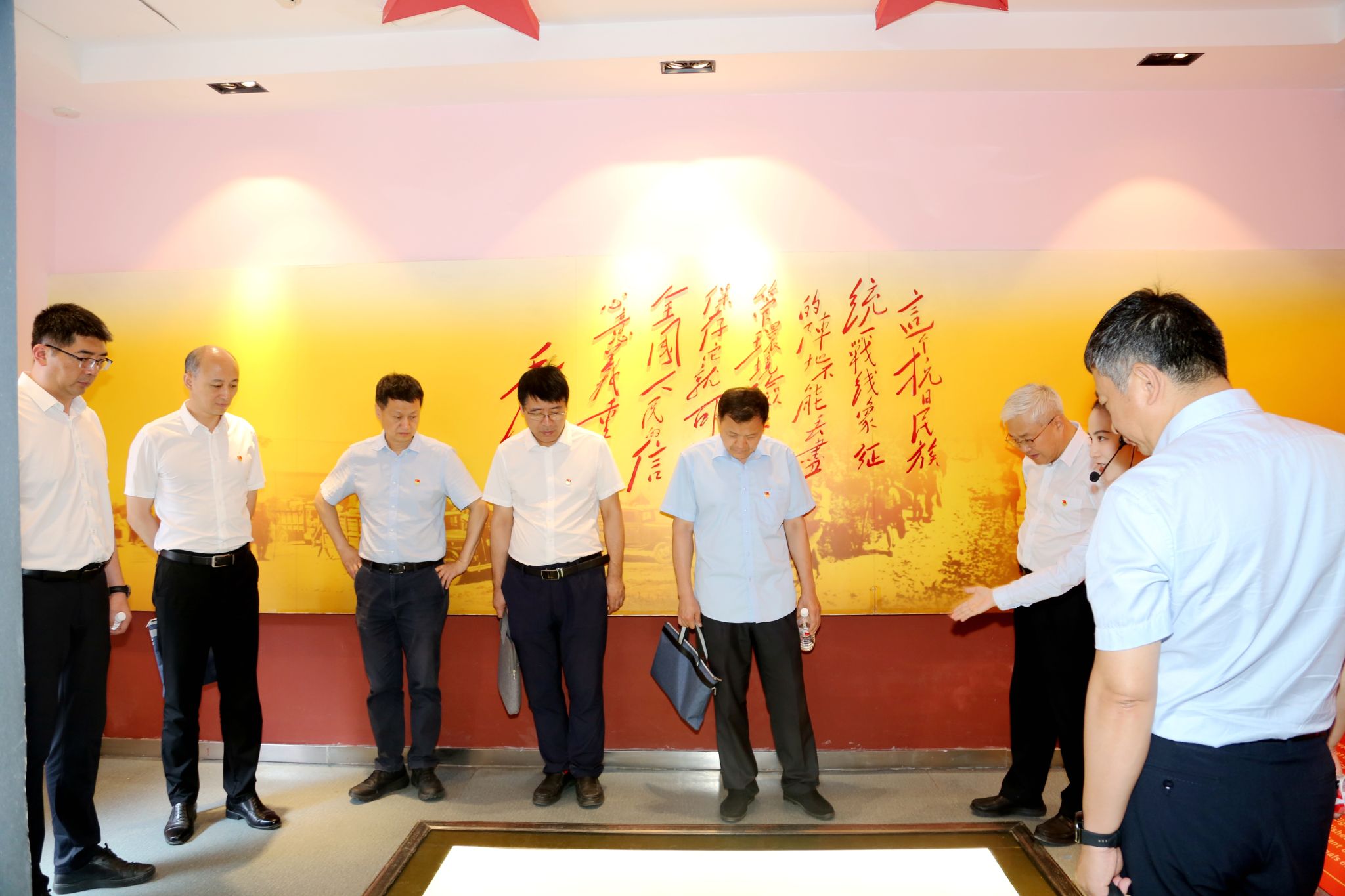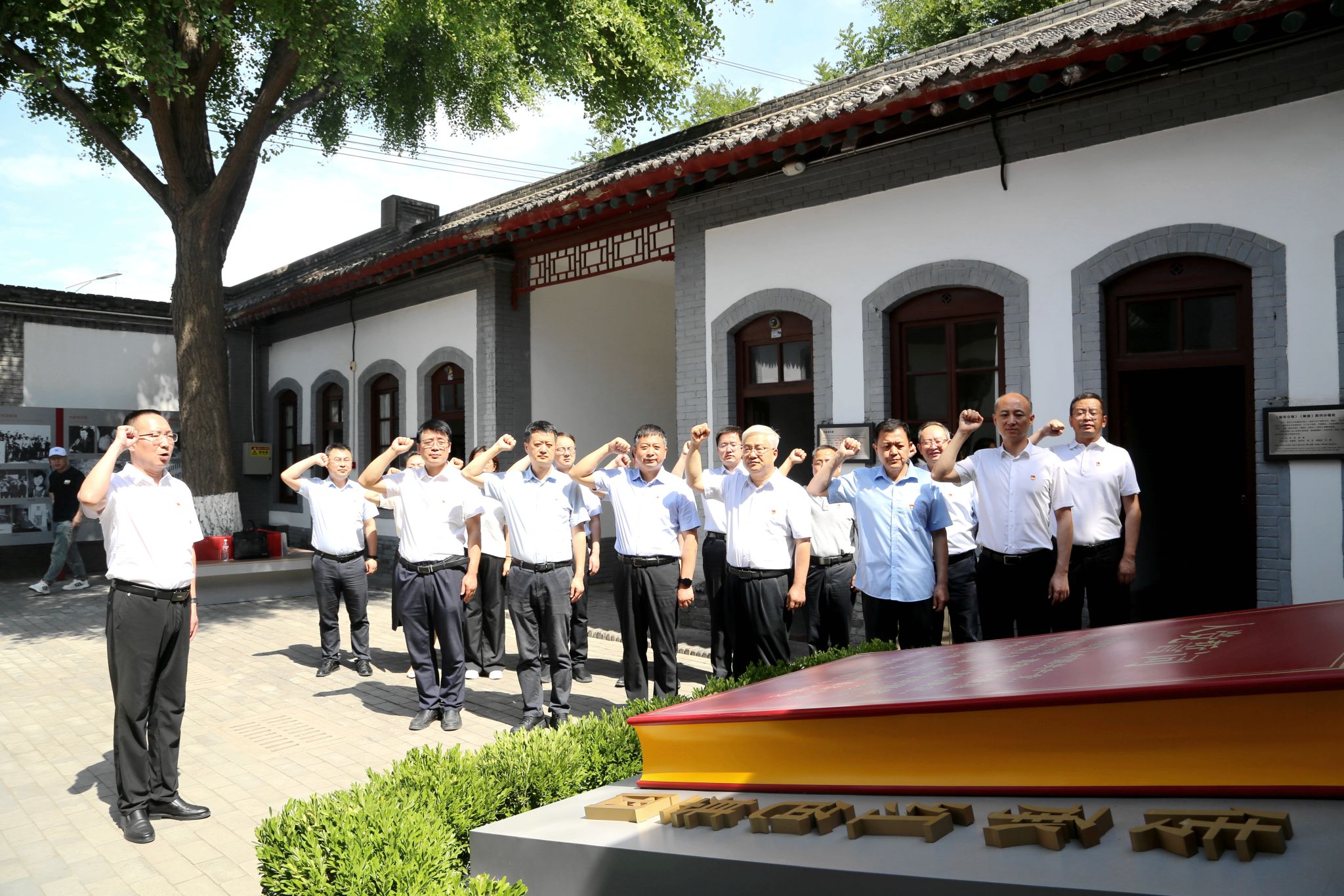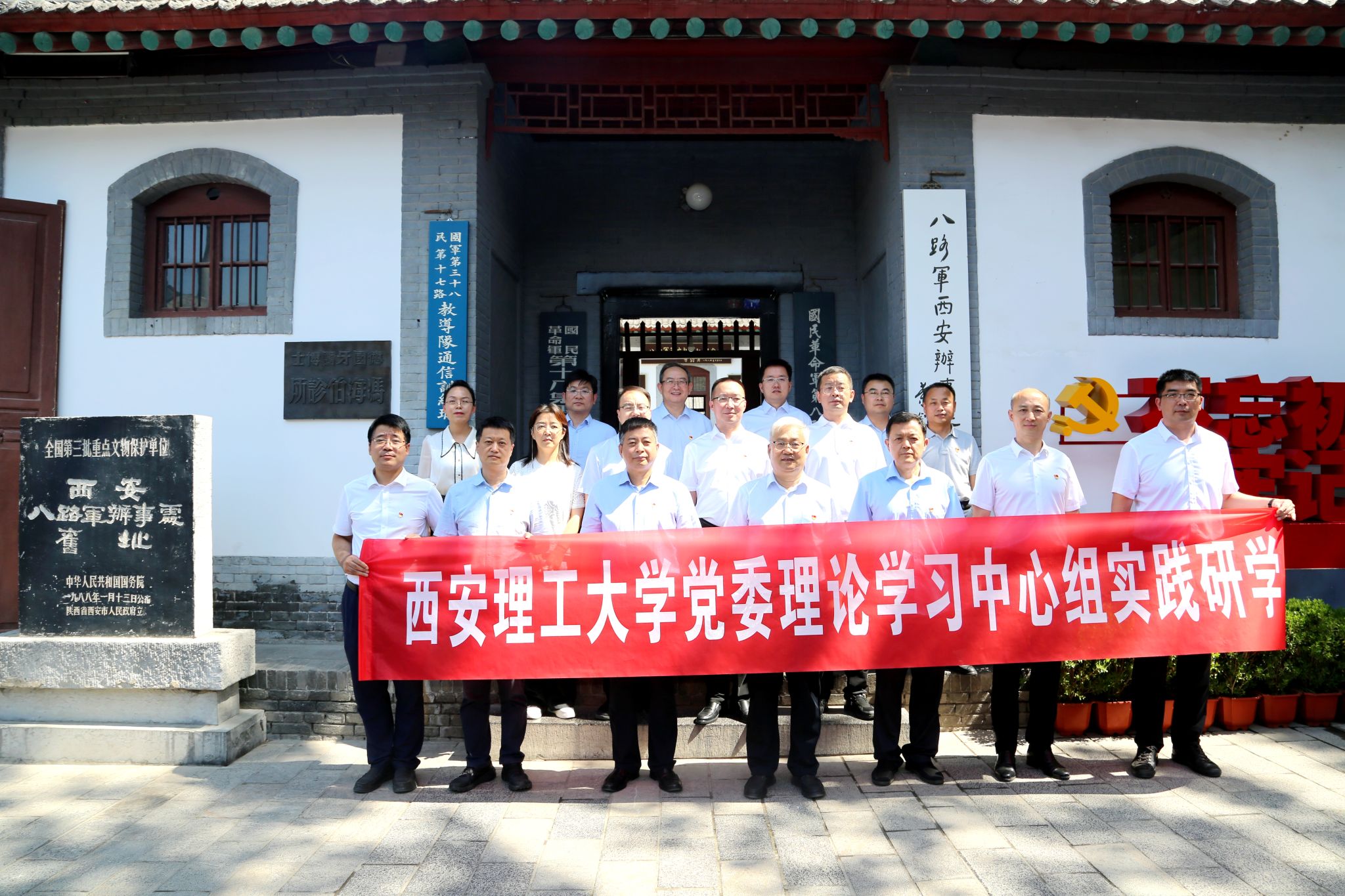 仪式结束后,校党委理论学习中心组集体参观纪念馆,开展“大思政课”实践教育。穿行在历史的长廊中,中心组成员在讲解员的带领下,依次参观了纪念馆办公室、会议室、机要室、救亡室、地下室等重要革命遗址。看着一幅幅生动的历史照片,望着一件件珍贵的历史文物,听着一段段震撼人心的英雄事迹,中心组成员深入了解了八路军办事处的组建历程,以及抗战时期八路军战士的生存条件、战斗环境和崇高理想追求,深切感受到老一辈革命家矢志不渝的理想信念和革命精神。在一号院旧址,全体党员庄严举起右拳,面对鲜红的党旗,一起重温入党誓词,用铿锵有力的誓言表达西理工人以实际行动恪守永葆初心、对党忠诚的庄严承诺和勇担新时代职责使命的坚定决心。