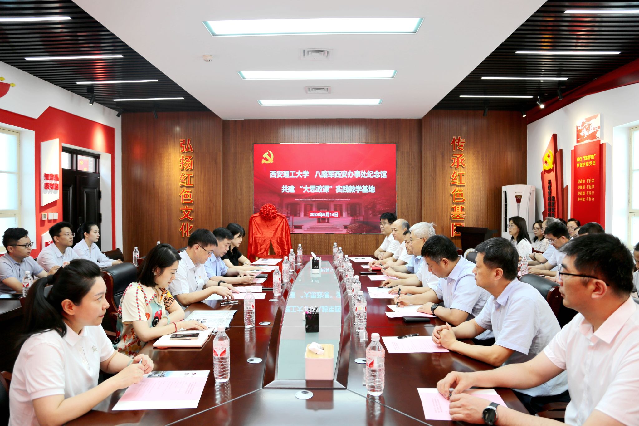 为深入贯彻落实习近平总书记对学校思政课建设的重要指示精神,发挥党史立德树人重要作用,推动beat365官网“大思政课”建设内涵式发展,拓展实践育人方式,6月14日上午,校党委理论学习中心组赴八路军西安办事处纪念馆开展实践研学活动暨共建“大思政课”实践教学基地揭牌仪式。揭牌仪式由八路军西安办事处纪念馆副馆长陈宏川主持。