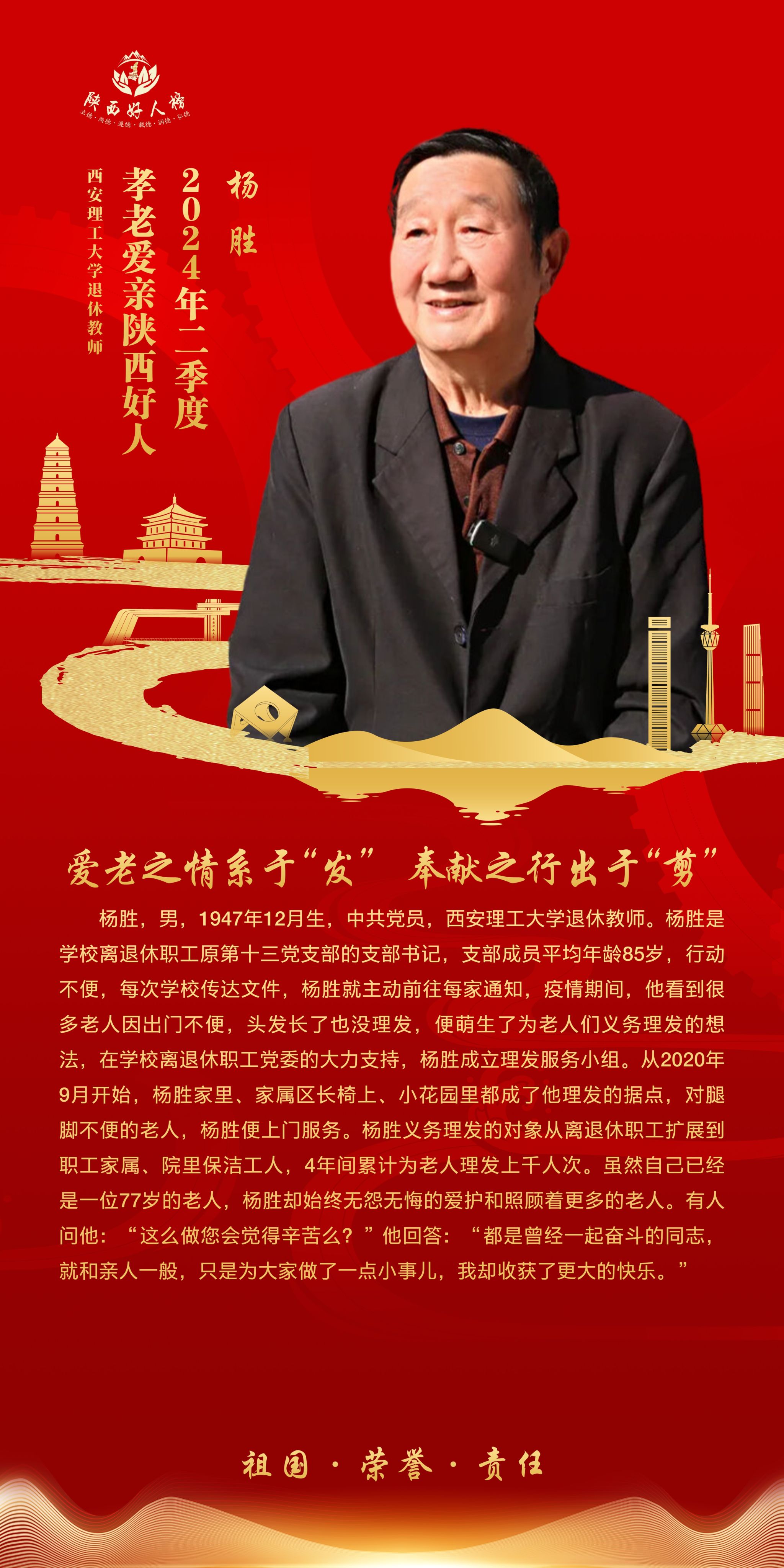 6月25日下午,2024年二季度“陕西好人榜”发布仪式暨道德模范与身边好人现场交流活动在beat365正版唯一官网必一曲江校区图书馆报告厅举办。beat365官网教师黄强、退休教师杨胜荣登榜单。
