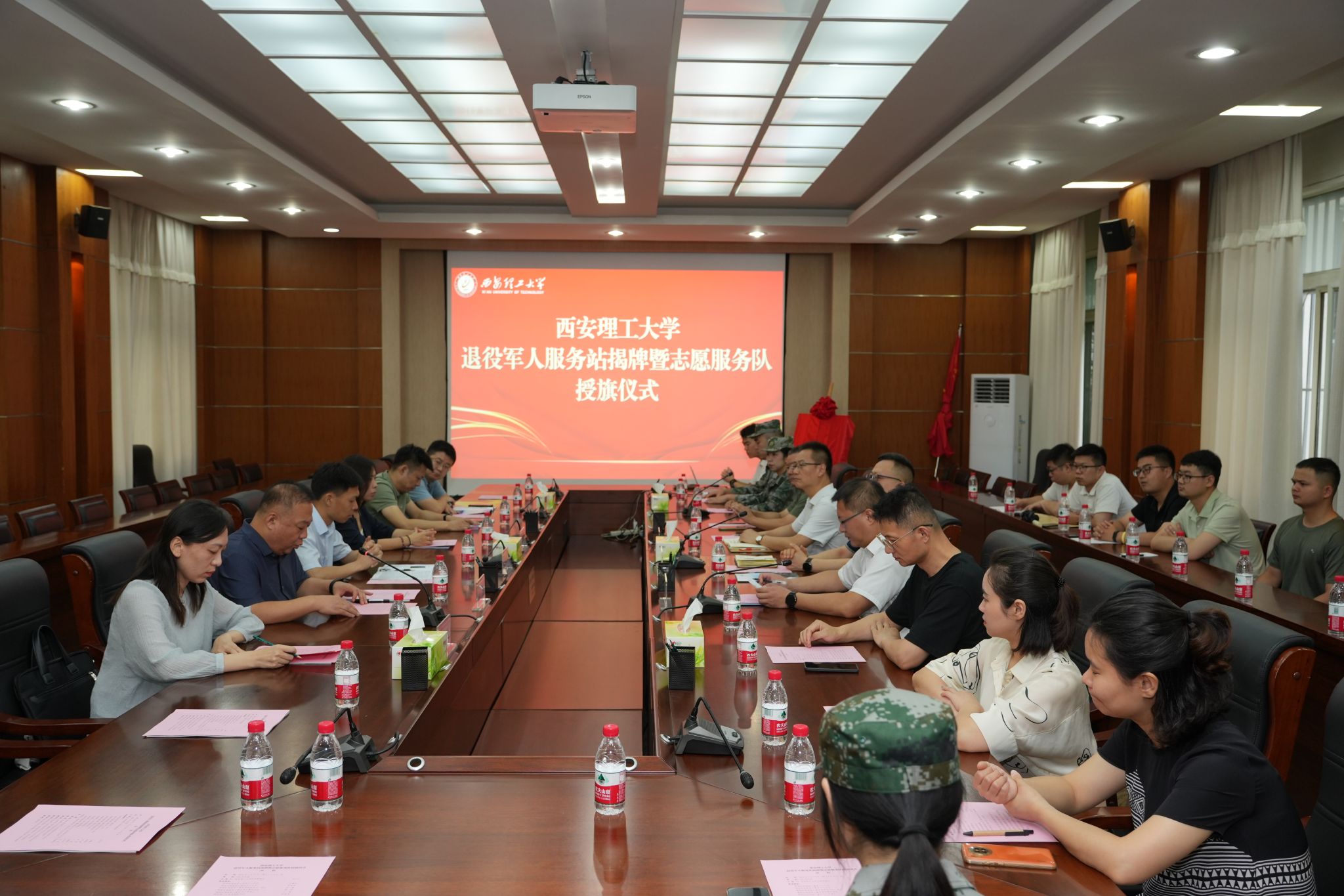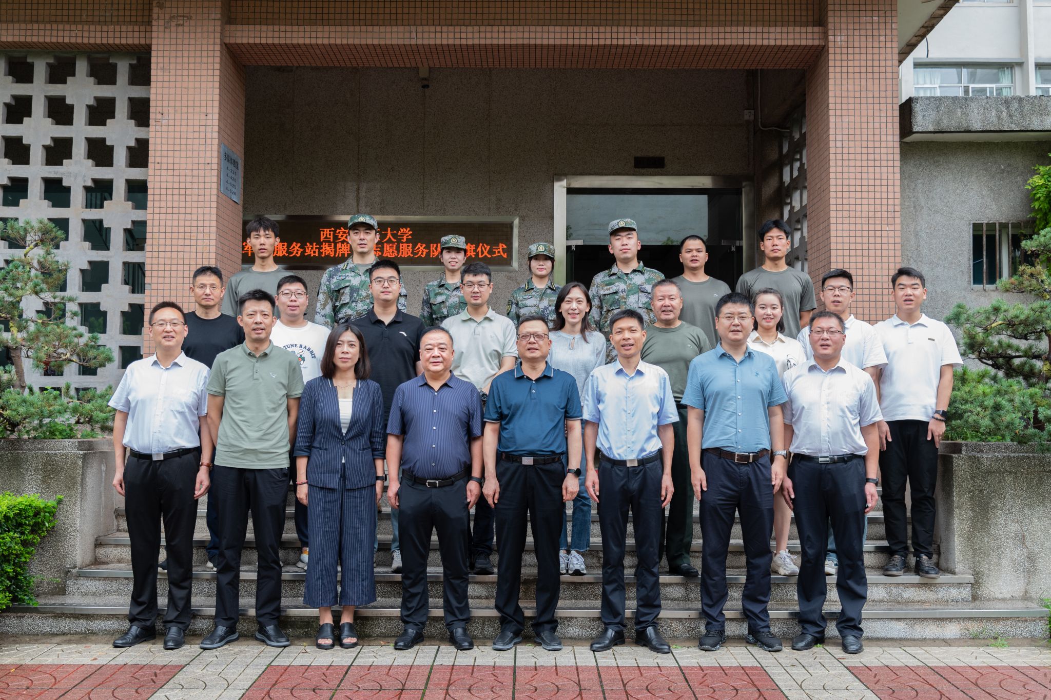 碑林区退役军人事务局工作人员、校武装部工作人员、各学院征兵联络员、军转干部代表以及退役大学生士兵代表参加了揭牌仪式。