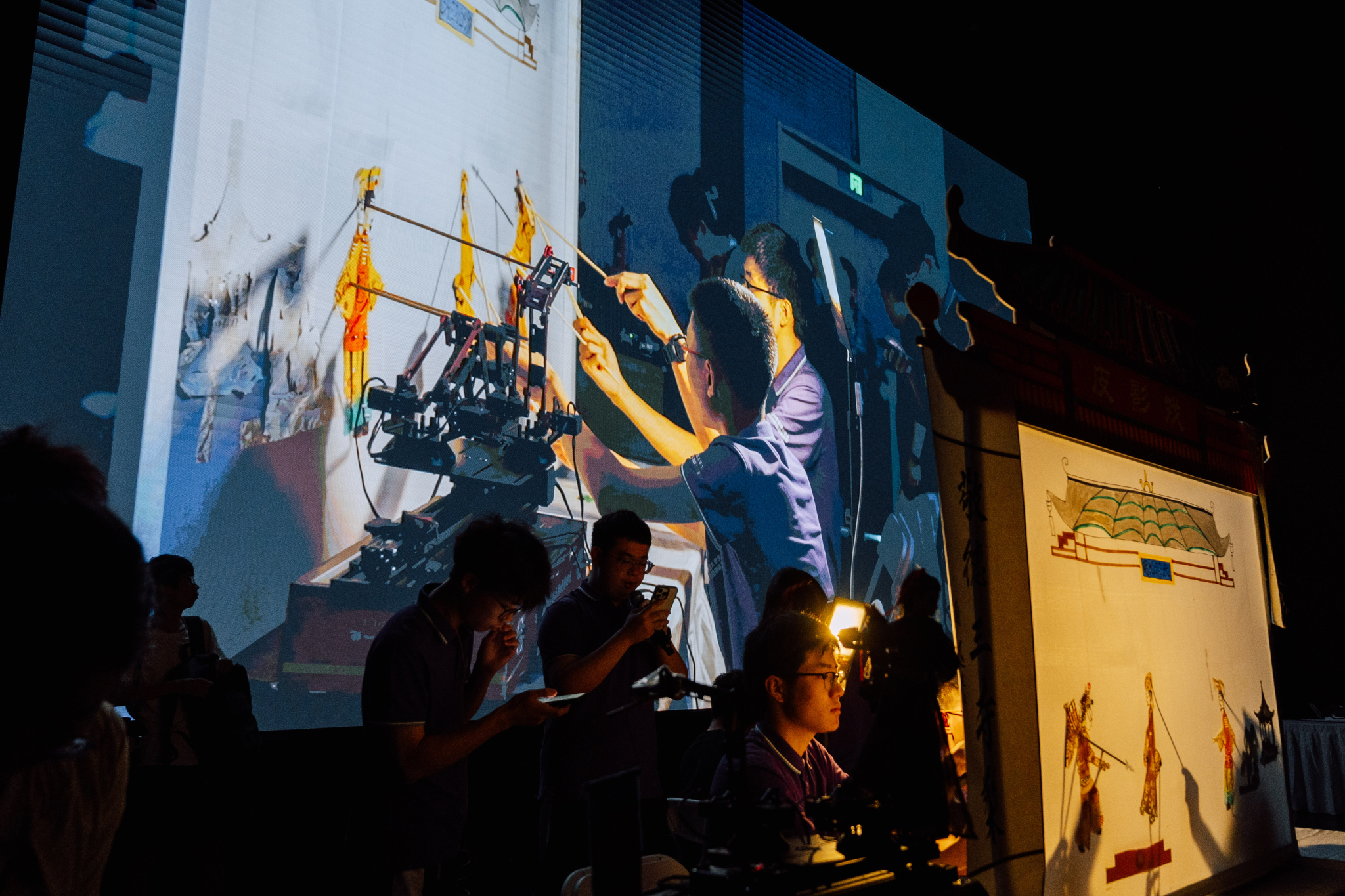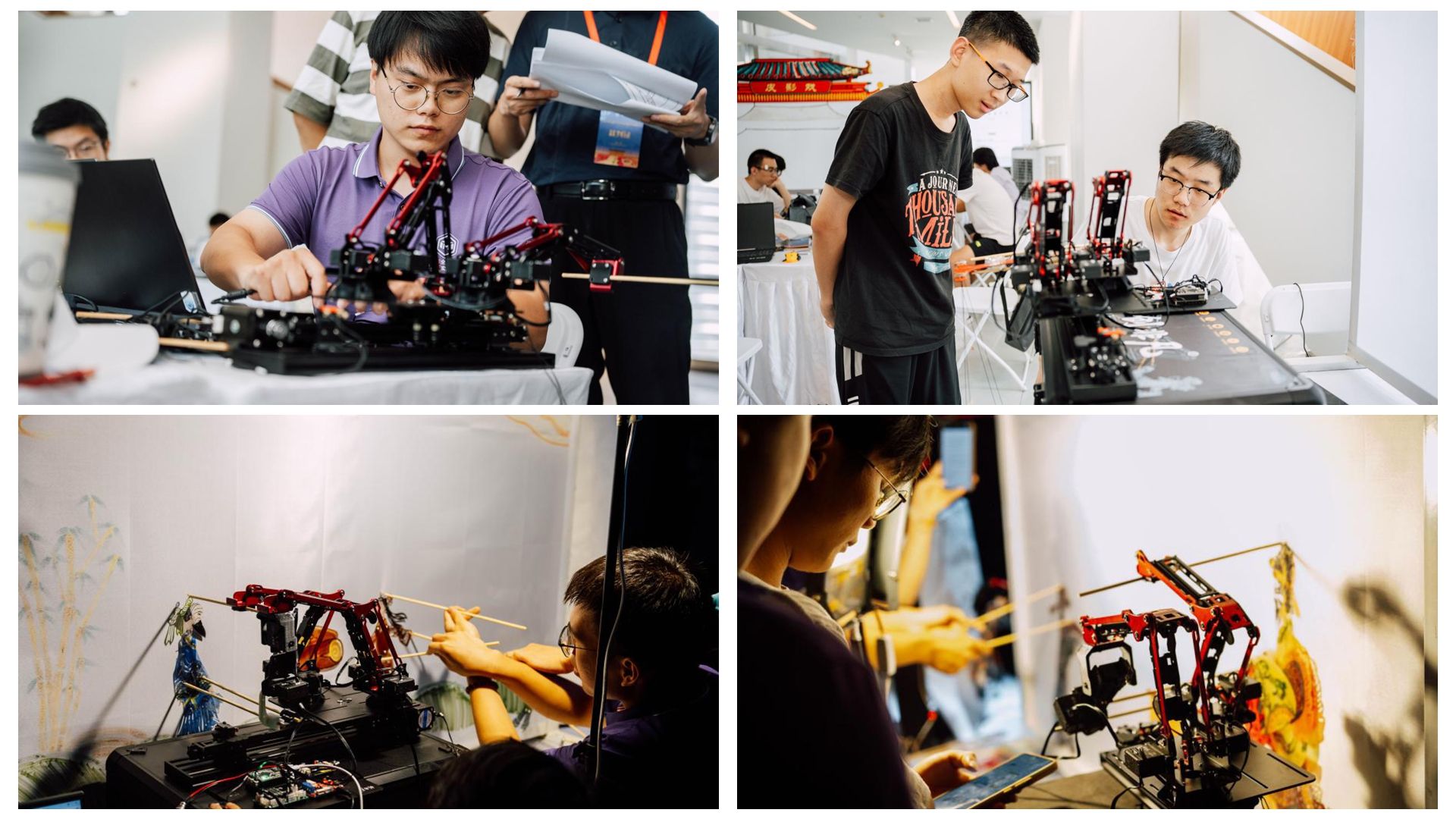 在机械臂的操作台前反复调试,在工作室里精雕细琢皮影与木偶,在科大讯飞星火大模型的辅助下编写故事脚本……在过去一周时间里,每一个细节都凝聚着他们的心血与汗水。在这里,物理专业的学生与艺术设计的学生并肩作战,计算机科学的学生与人文社科的学生思维碰撞,共同探索着科技与文化的完美融合。