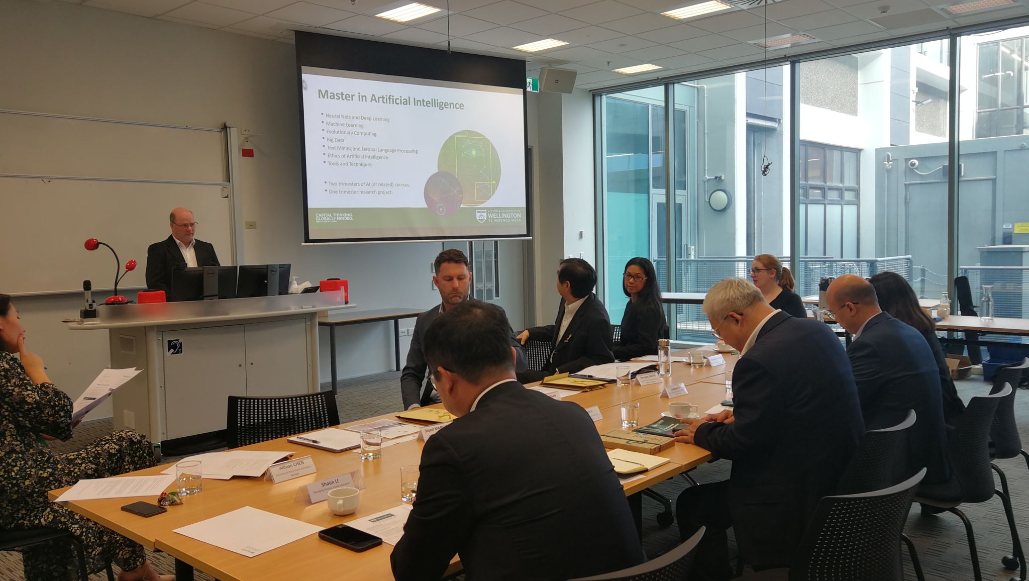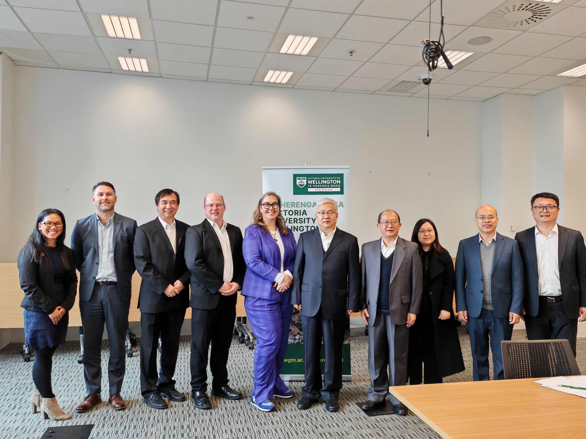 在惠灵顿维多利亚大学,副校长Rawinia Higgins教授专门组织学术发展部、数据科学及人工智能中心、国际部等部长,教授与李智军一行座谈。双方回顾了两校签署海外短期留学项目协议以来开展的各项工作,认为双方在诸多领域有合作空间和机遇,并围绕学科发展及学生交流进行了详细探讨,一致同意就两校之间设立国际合作创新人才培养项目继续进行对接和推进,并签订了合作意向书。期间,李智军专程看望了beat365官网留学学生。