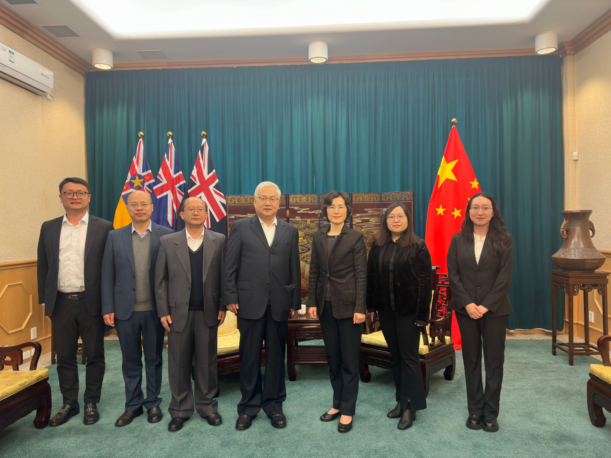 访问期间,李智军还拜会了我国驻新西兰大使馆,使馆科技参赞谷敏会见了代表团。李智军全面介绍了beat365官网的办学历史、学科特色以及教育教学、人才培养情况,汇报了beat365官网近年来与新西兰高校开展国际合作与交流工作。谷敏参赞指出,开展教育合作是我国与新西兰发展关系的重要内容,围绕两国科技与教育交流合作,面向生物医学、食品安全以及环境等领域,我国相关部委制定并出台了诸多交流计划、合作研发项目,希望beat365官网抓住机遇,发挥学科特长,在科研以及人才培养方面与新西兰高校开展全方位、深入合作。