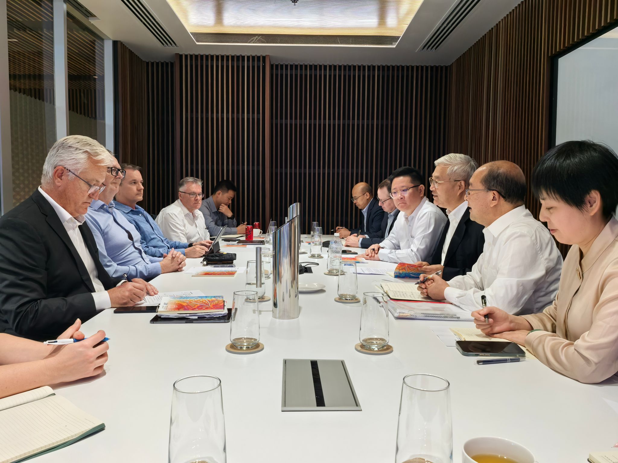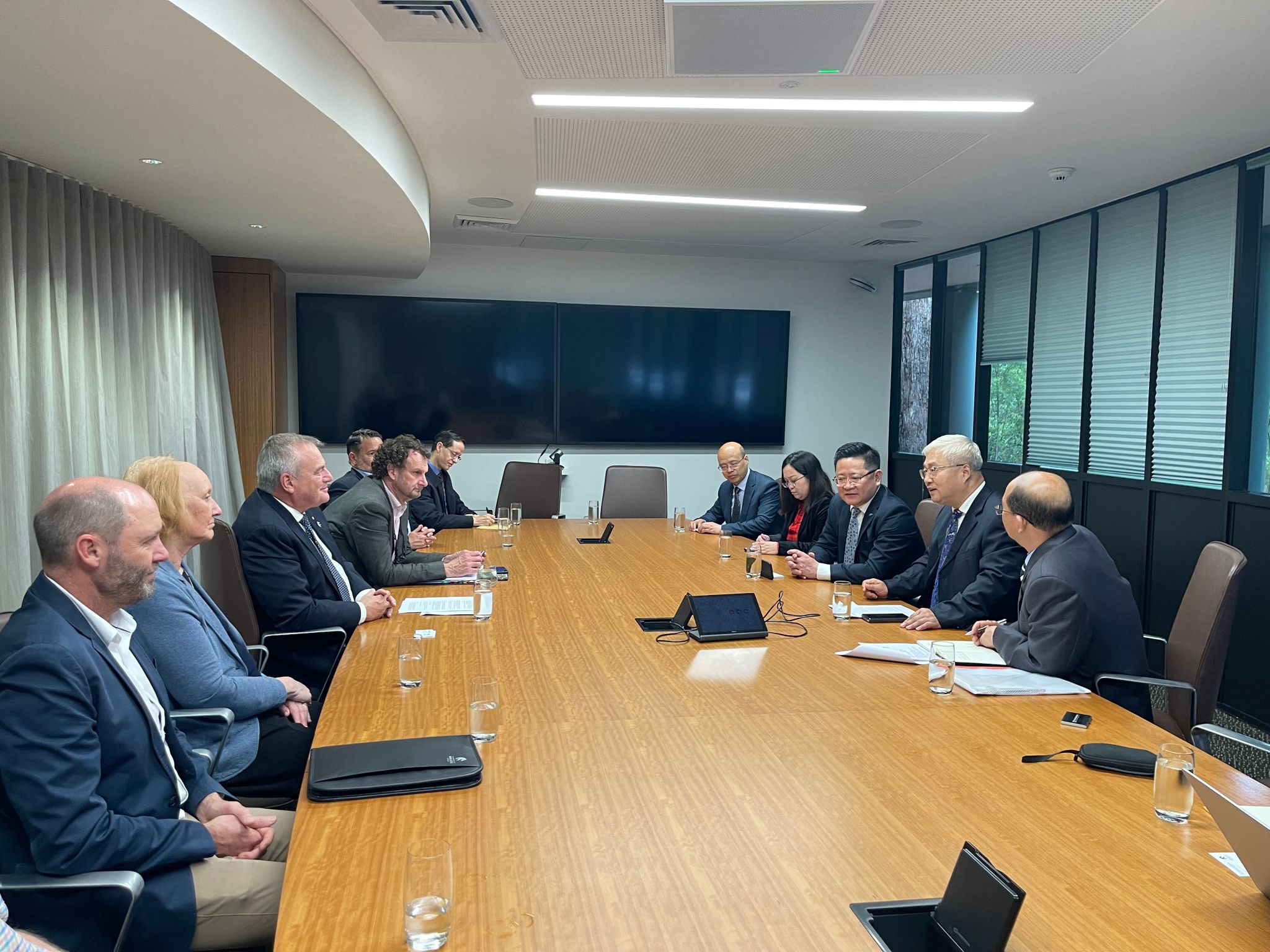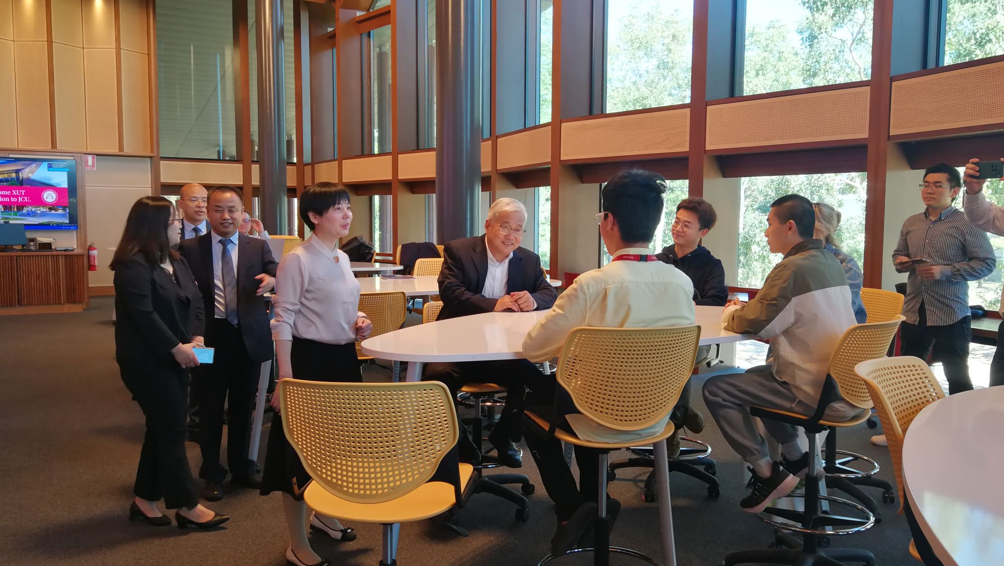 在纽卡斯尔大学,校长Alex Zelinsky教授,副校长Kent Anderson 教授以及有关学部部长、教授等与李智军一行进行座谈交流,双方详细介绍了学校基本情况以及办学理念,基于两校共同的工科教学科研背景,双方在研究生联合培养以及教师科研国际合作等方面达成合作共识,确定了校际合作思路以及具体工作安排。