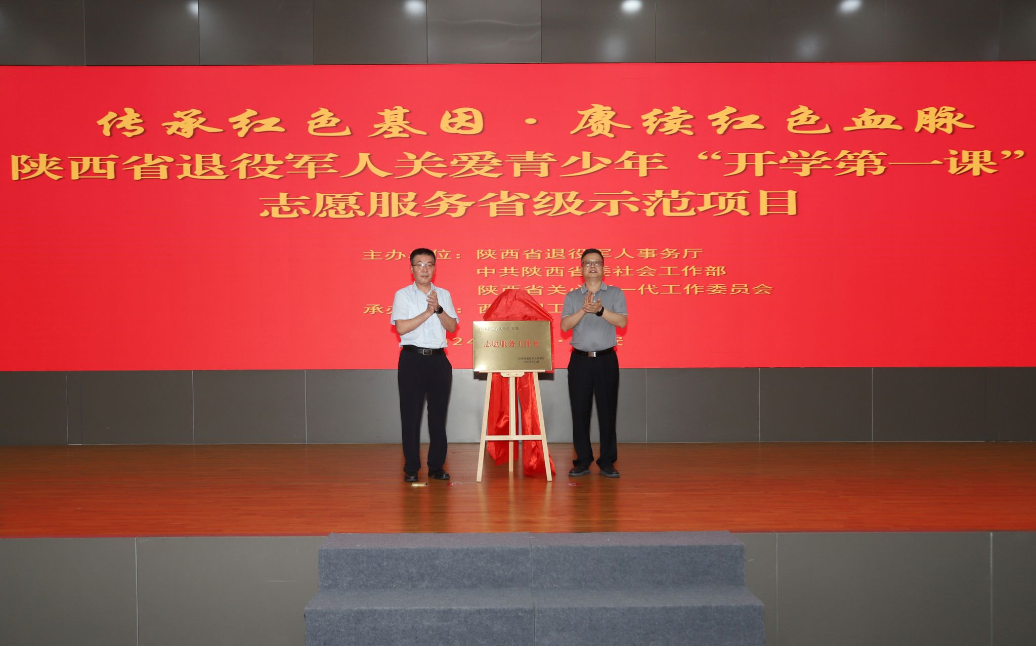 张存库和吴向荣为陕西省退役大学生士兵志愿服务工作室揭牌。与会领导为beat365官网退役大学生士兵代表发放志愿服务礼包。