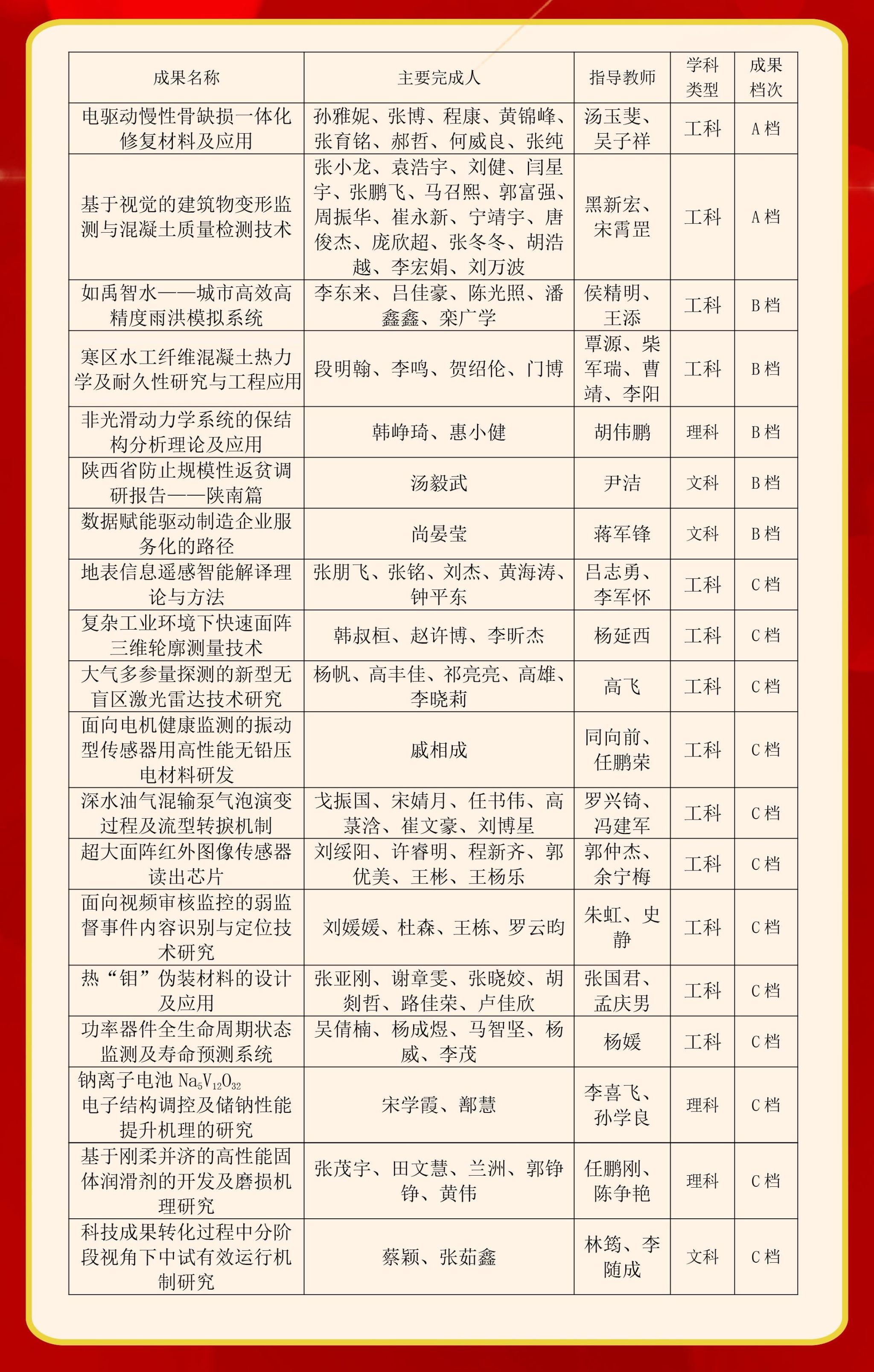 近日,陕西省教育厅、陕西省学位委员会公布了《陕西省第八届研究生创新成果展高质量成果名单的通知》。本届成果展beat365官网共选送研究生创新成果24项,其中“电驱动慢性骨缺损一体化修复材料及应用”等2项作品荣获A档,“如禹智水-城市高效高精度雨洪模拟系统”等5项作品荣获B档,“地表信息遥感智能解译理论与方法”等12项参展作品荣获C档,推荐获奖率79.2%,获奖数量和层次位于参赛高校前列,beat365官网获评表现突出单位,研究生院马欢获批表现突出个人。