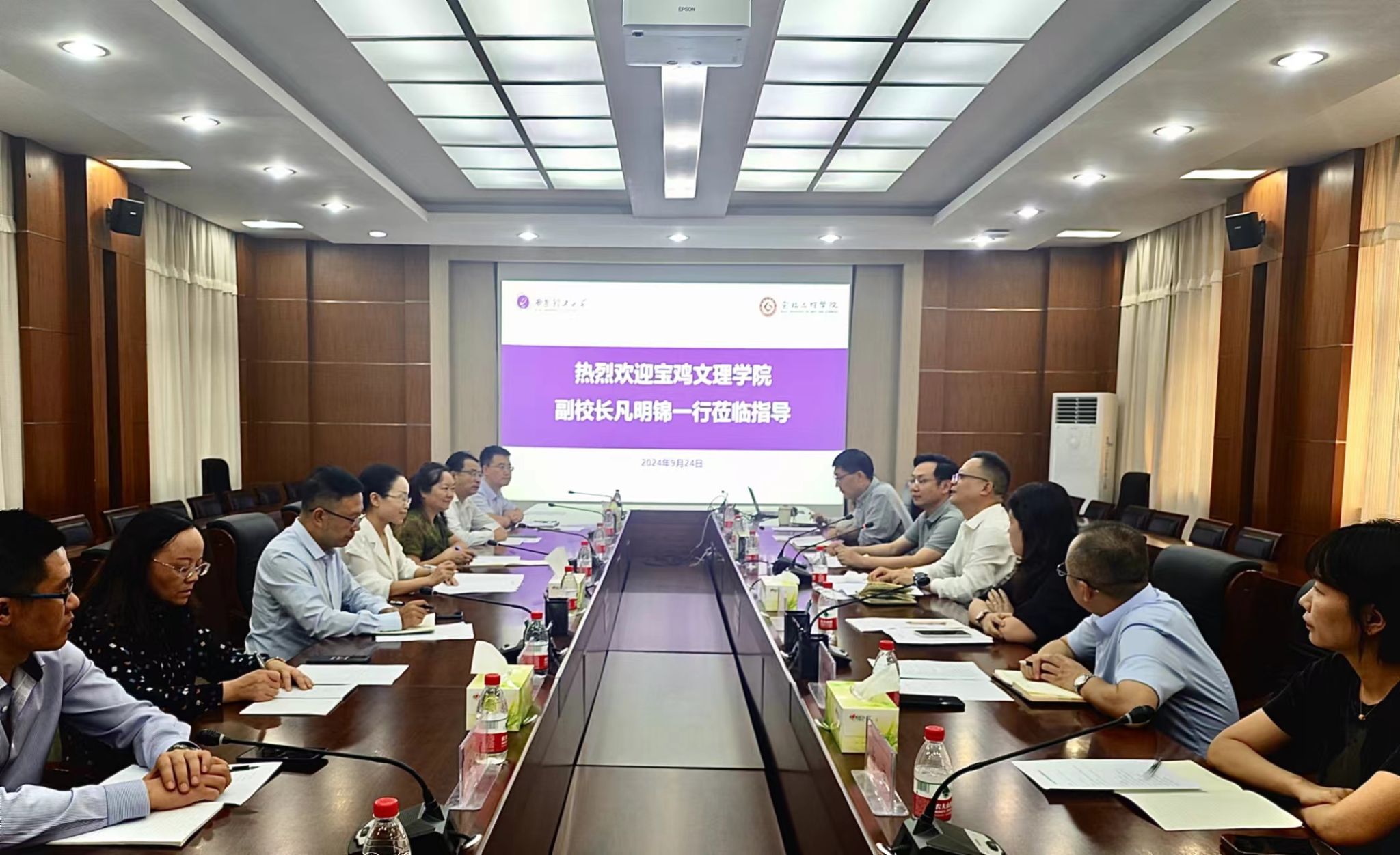 9月24日下午,宝鸡文理学院副校长凡明锦一行13人来校调研交流,校党委副书记张存库出席座谈会并致辞,会议由研究生院院长朱记伟主持。