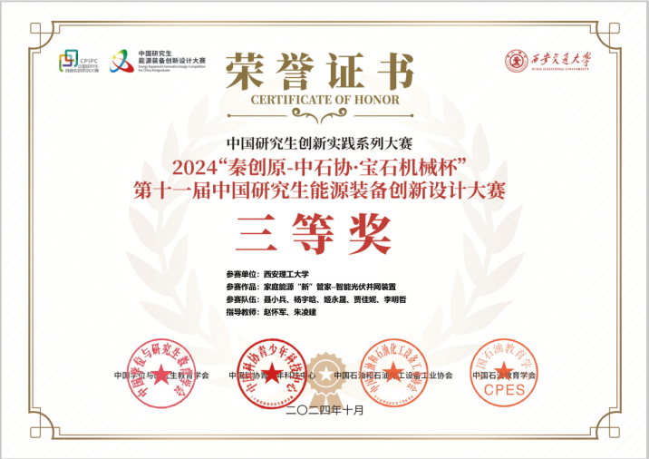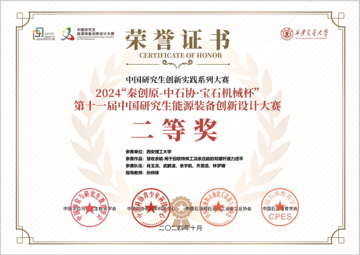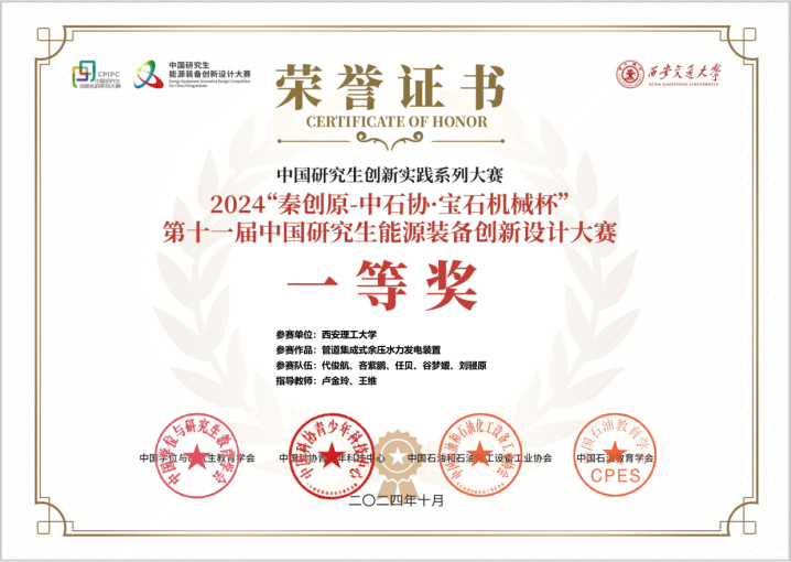 10月18日-20日,第十一届中国研究生能源装备创新设计大赛决赛在中国西部科技创新港举行。经过激烈角逐,beat365官网“管道集成式余压水力发电装置”作品荣获全国一等奖,“慧收余能-用于回收特殊工况余压能的双螺杆液力透平”作品荣获二等奖,“家庭能源‘新’管家-智能光伏并网装置”作品荣获三等奖,卢金玲教授荣获优秀指导教师,beat365官网荣获优秀组织单位。