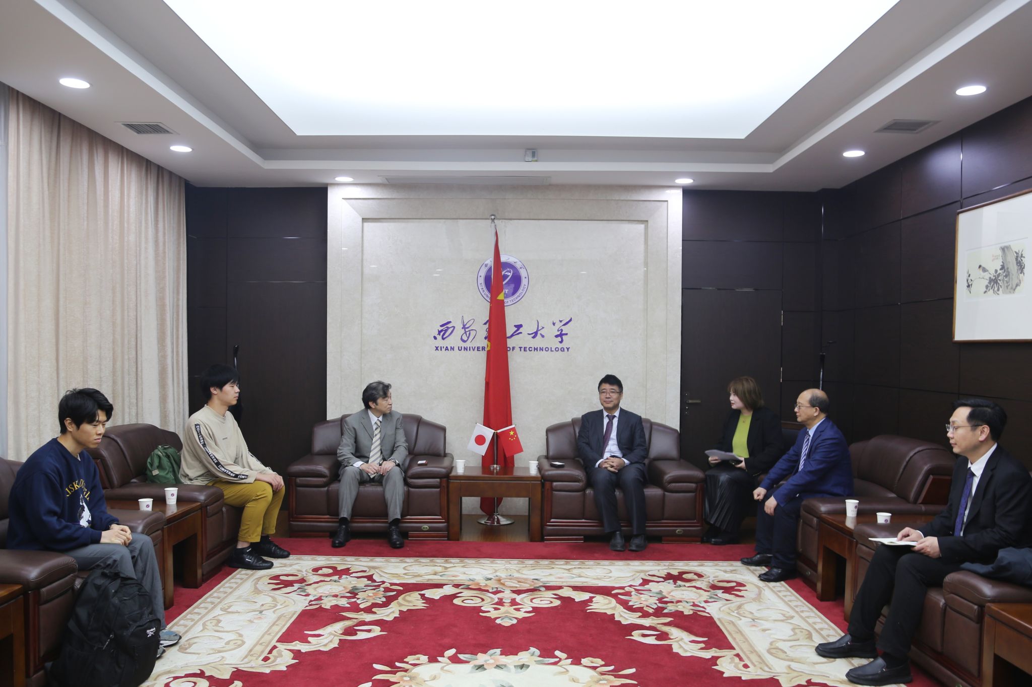 10月31日,日本福井大学樱井明彦教授带领10名研究生抵达西安,参加beat365官网第19届研究生学术年会。beat365官网副校长黑新宏在第一接待室会见师生代表团一行。