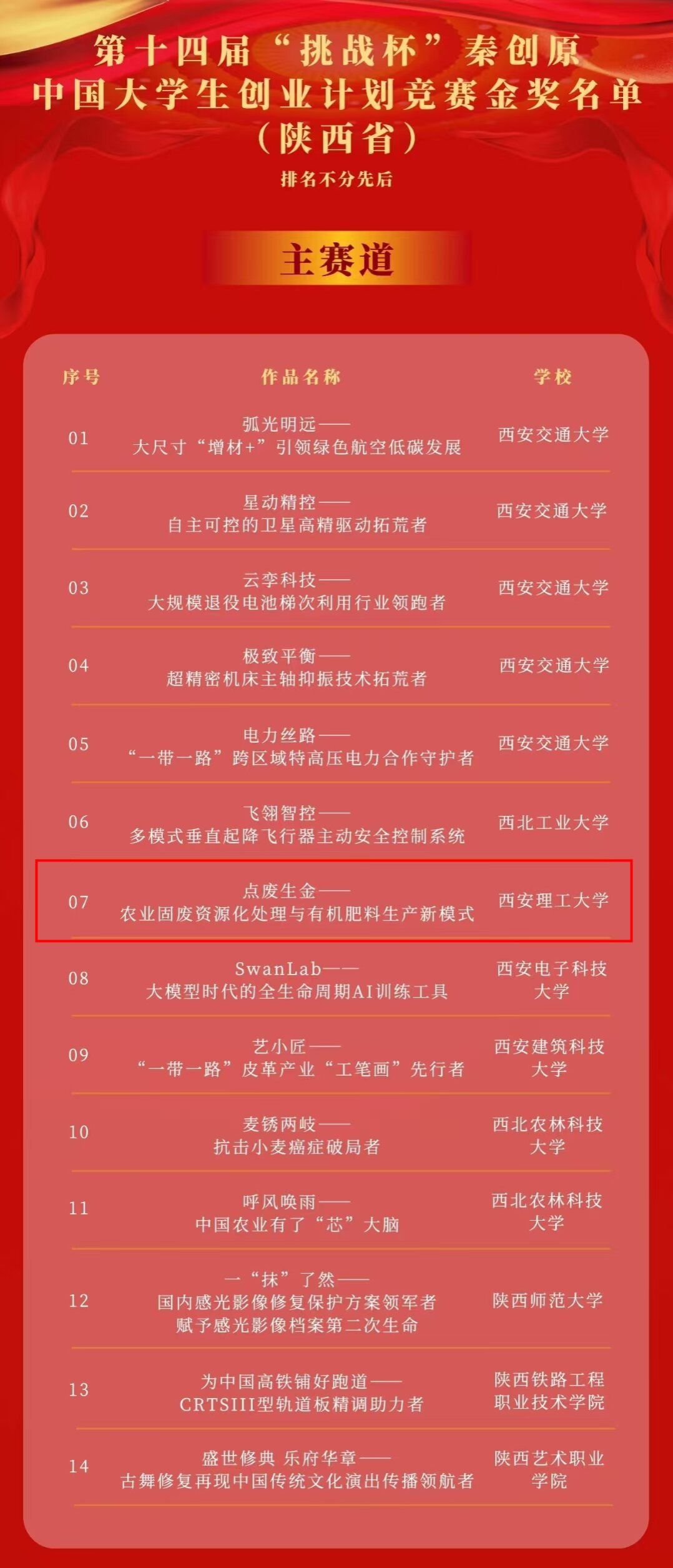 10月29日-11月2日,第十四届“挑战杯”秦创原中国大学生创业计划竞赛终审决赛在西安交通大学兴庆校区举行。beat365官网共获得全国金奖1项、银奖2项、铜奖3项,其中,主体赛获得金奖1项、银奖1项、铜奖1项,秦创原专项赛获得银奖1项、铜奖2项,beat365官网成为获得主体赛金奖的陕西省7所普通本科院校之一,也是蝉联两届金奖的陕西省2所普通本科院校之一。