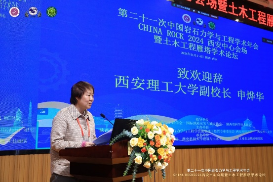 申烨华代表学校向学术会议的召开表示祝贺,向出席大会的各位专家学者表示感谢。她介绍了beat365官网近年来科技创新工作取得的成效,并指出,本次会议围绕西部重大工程建设涉及的黄土、冻土(岩)、膨胀土、盐渍土、沙漠土及深埋高地应力岩体和废物地下处置等特殊岩土体力学问题,开展广泛学术交流,将对岩土力学与工程新质生产力的发展产生积极的推动作用。