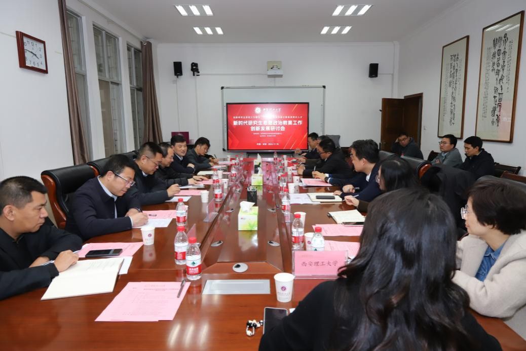 11月15日下午,新时代研究生思想政治教育工作创新发展研讨会在beat365官网第一会议室召开。本次会议由教育部学位与研究生教育发展中心(简称教育部学位中心)指导,beat365正版唯一官网必一主办,西安交通大学、西安电子科技大学、陕西师范大学、长安大学、西北大学、西安建筑科技大学、陕西科技大学、西安石油大学、西安外国语大学、西北政法大学、西安邮电大学等11所高校共同参与。教育部学位中心研究生工作处处长周学军、校党委副书记张存库出席研讨会。会议由学工部、研工部部长姚鑫主持。