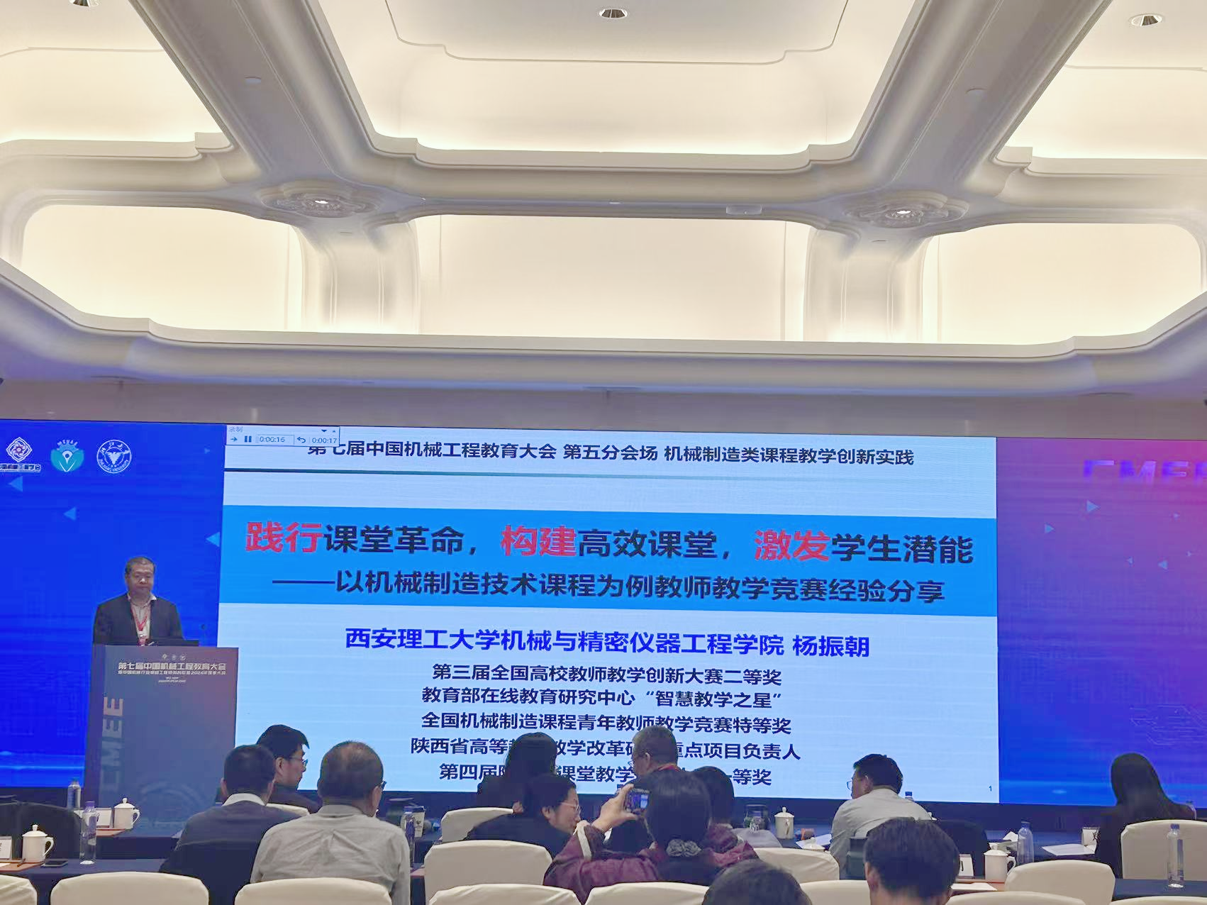beat365官网机械与精密仪器工程学院教师杨振朝联合西北机器有限公司申报的《产教融合背景下机械制造技术课程“铸魂强能”教学创新与实践》获本科生组课程类全国总决赛二等奖。杨振朝应邀作了题为《践行课堂革命,构建高效课堂,激发学生潜能—以机械制造技术课程为例教师教学竞赛经验分享》的报告。