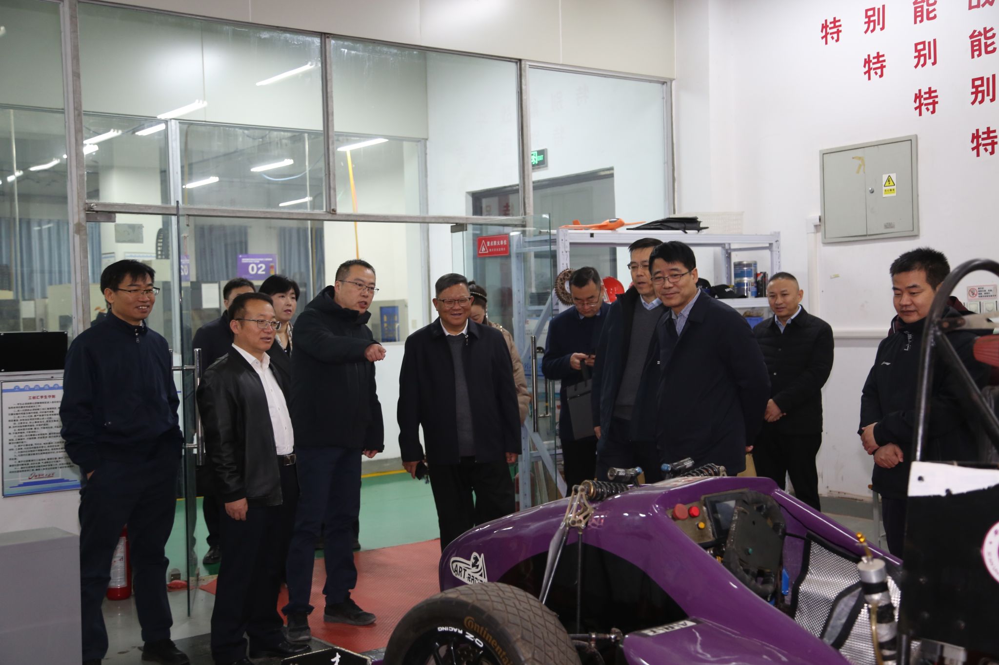 座谈会前,黑新宏陪同邓军一行参观了学校校史馆和唐仲英工程训练中心。