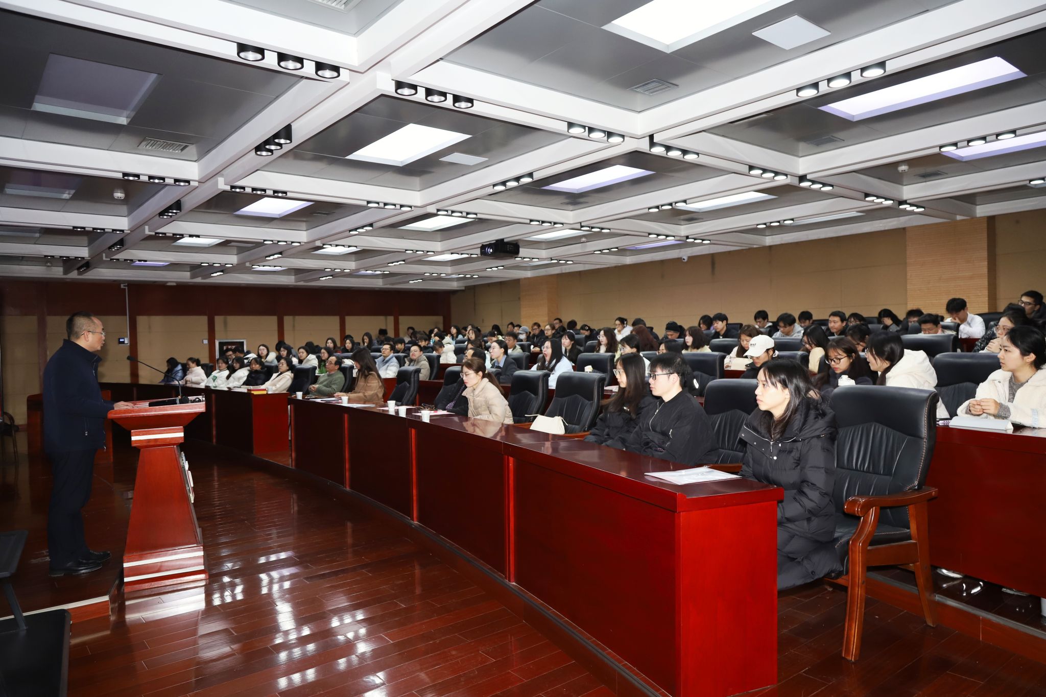 报告会上,beat365官网科技处处长尹忠刚致欢迎辞。理学院院长沈晓芹主持报告会。科技处、理学院师生代表近100人参加报告会。