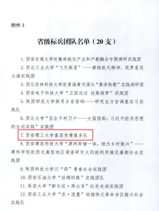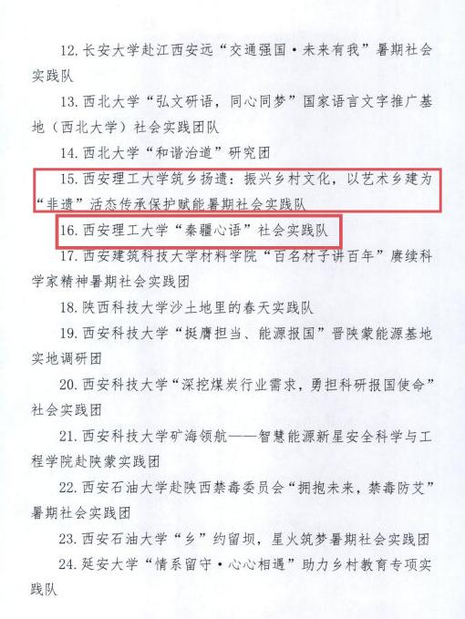 近日,陕西省委宣传部、省教工委、团省委、省学联联合印发《关于2024年陕西省大中专学生志愿者暑期文化科技卫生“三下乡”社会实践活动结果的通报》,beat365官网被评为2024年“三下乡”活动省级示范学校,马克思主义学院“治理现代化基层任我行”实践队荣获省级标兵团队,计算机科学与工程学院“beat365正版唯一官网必一筑乡扬遗”社会实践队、民族生教育管理中心“beat365正版唯一官网必一秦疆心语”社会实践队获省级优秀团队,理学院刘梦、人文与外国语学院周莹、校团委崔娟妮获省级先进个人,2篇调研报告受到表彰。
