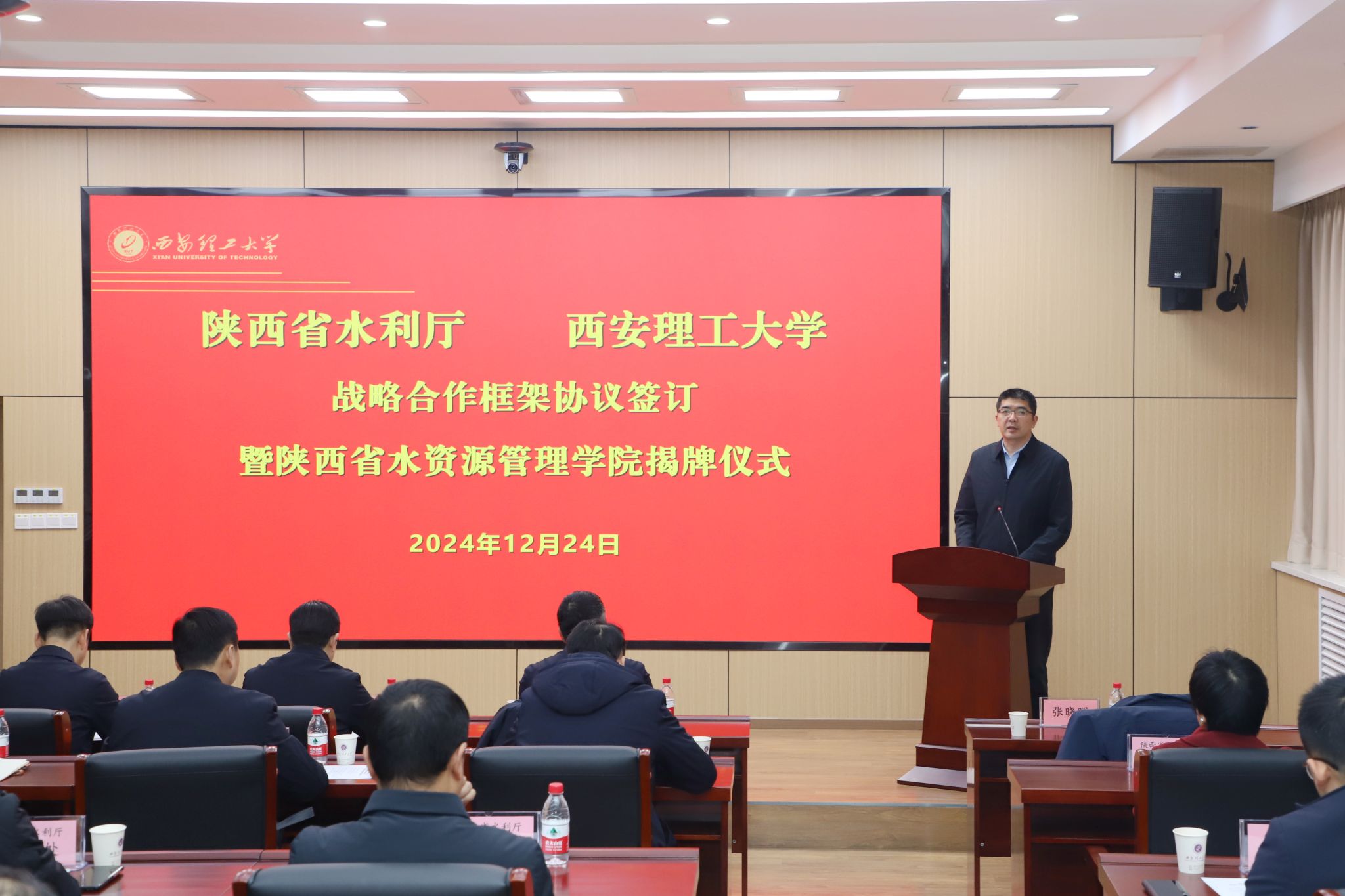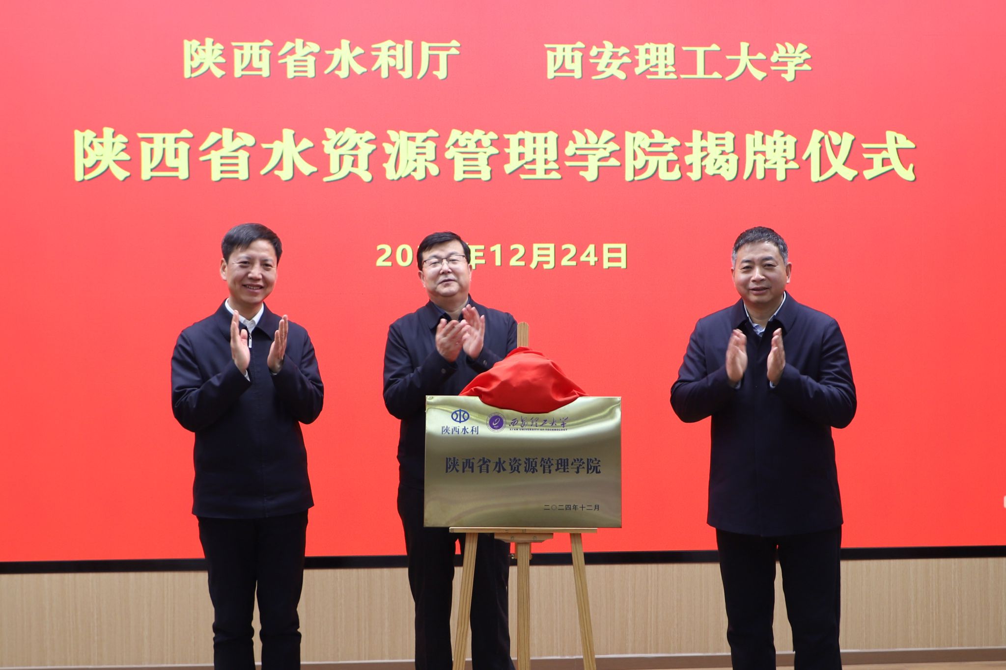 12月24日上午,beat365官网与陕西省水利厅战略合作签约暨陕西省水资源管理学院揭牌仪式在金花校区举行。陕西省水利厅党组书记、厅长郑维国,陕西省委教育工委委员、教育厅副厅长申雪峰,陕西省水利厅党组成员、副厅长党德才,beat365官网校长刘云贺出席仪式,仪式由副校长张晓晖主持。
