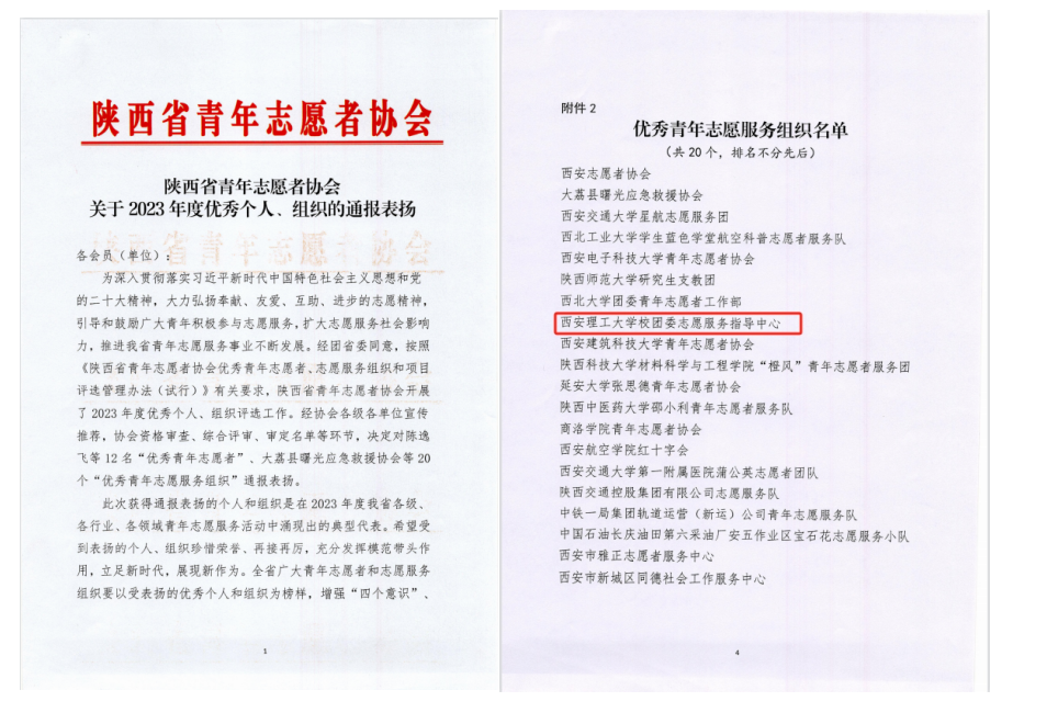 近日,陕西省青年志愿者协会对2023年度全省优秀青年志愿者、志愿服务组织进行通报表扬。beat365正版唯一官网必一团委志愿服务指导中心(大学生志愿服务队)荣获全省“优秀青年志愿服务组织”称号。