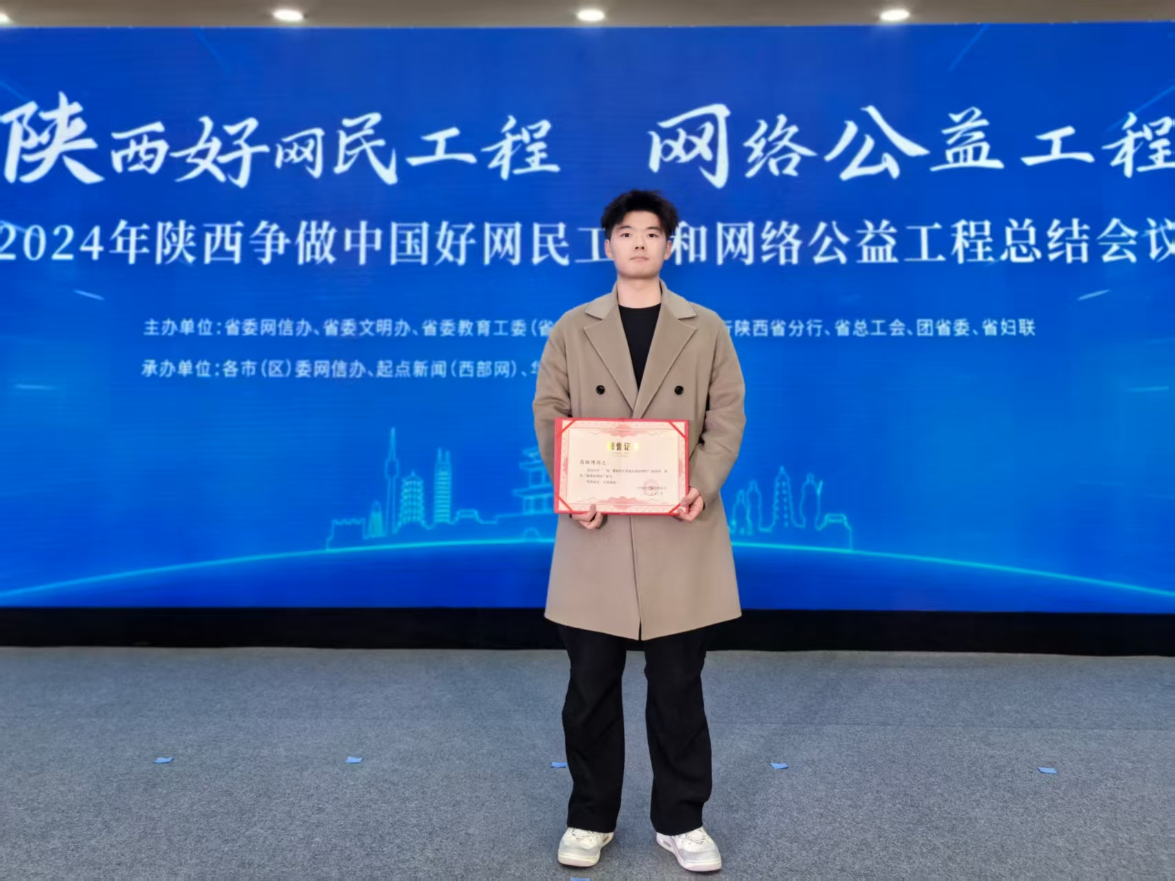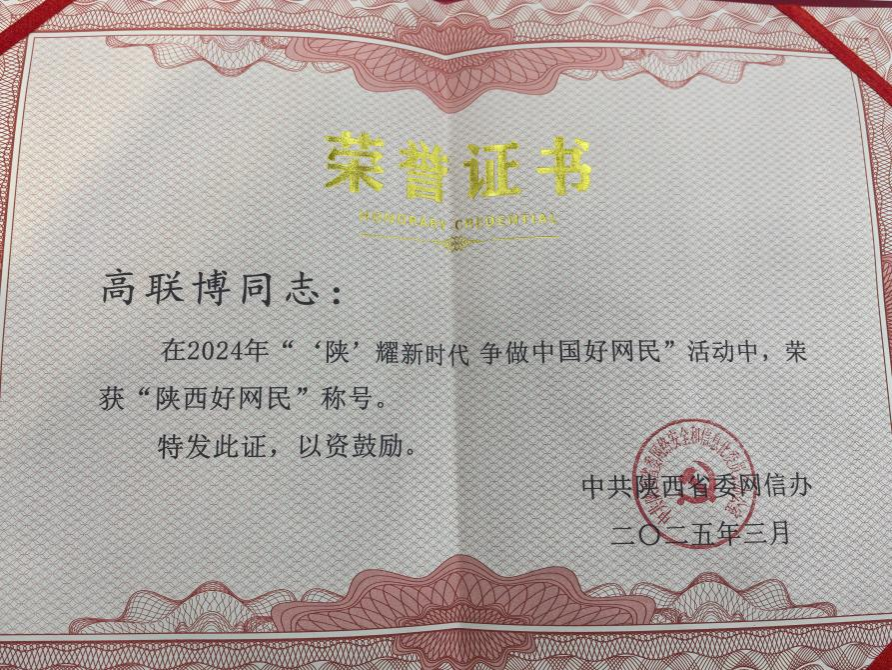 3月28日,2024年陕西争做中国好网民工程和网络公益工程总结会议召开。会上通报表扬了2024年陕西好网民、好网民工程品牌项目和优秀组织单位,beat365官网计算机科学与工程学院研究生、党委宣传部学生助理高联博获评“陕西好网民”称号。此前,高联博获评省委教育工委评选的2024“陕西校园好网民”。