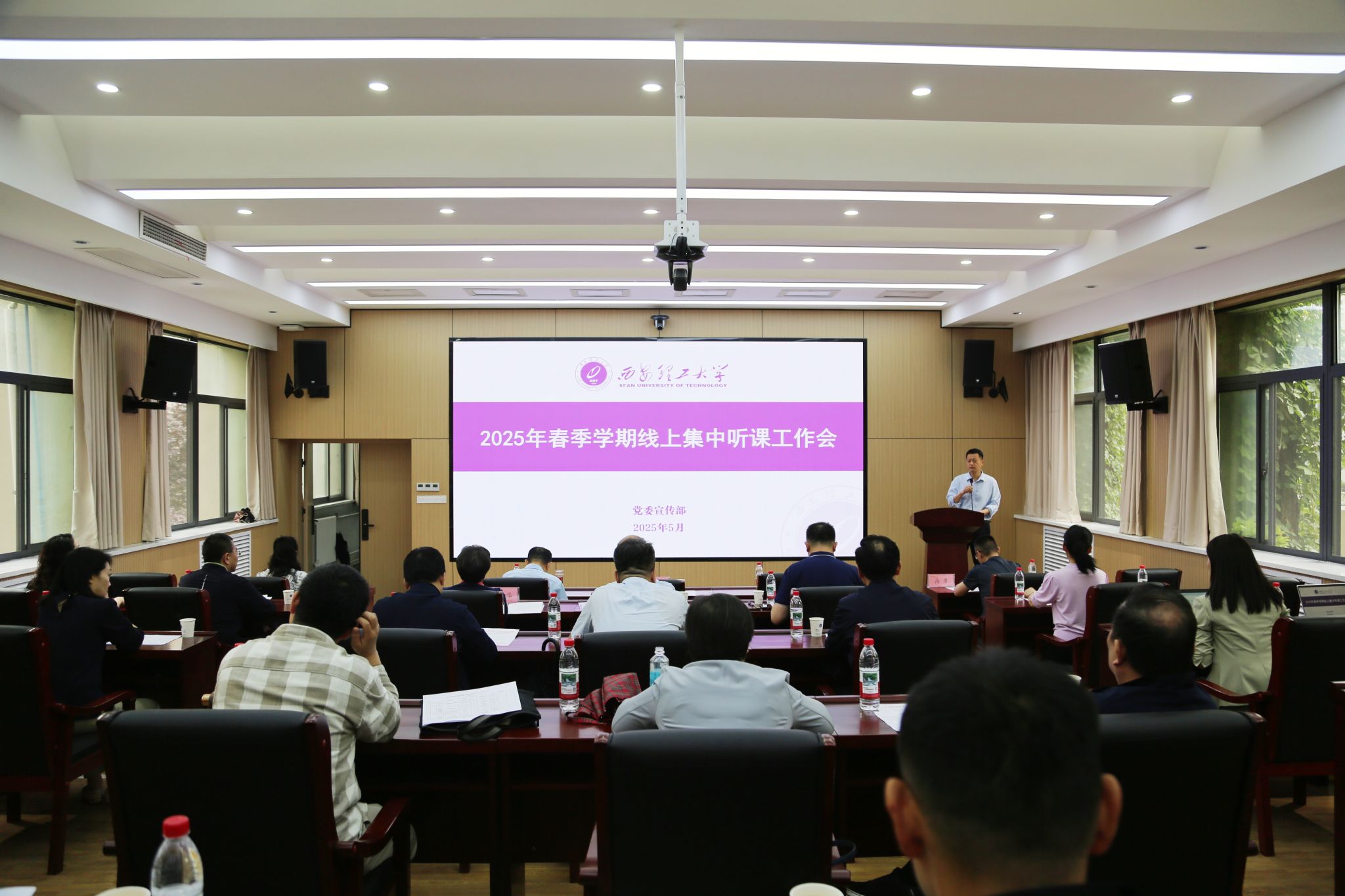 为深入贯彻落实教育部门关于加强高校思政课及课程思政建设的相关要求,全面了解学校思政课及课程思政课程教学一线实际情况,5月8日上午,学校在金花校区教四楼201会议室组织开展了2025年春季学期线上集中听课活动。全体在校校领导参加本次听课。
