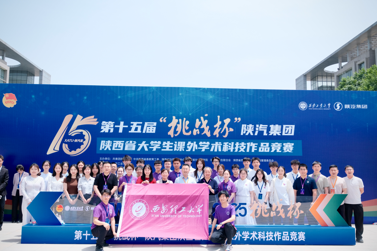 5月24日,由共青团陕西省委、省委教育工委、省科协、省社会科学院、省学联、西咸新区管委会联合主办的第十五届“挑战杯”陕汽集团陕西省大学生课外学术科技作品竞赛闭幕式暨颁奖仪式在西安工业大学未央校区举行。beat365官网学子在本届大赛中获得特等奖5项、一等奖2项、二等奖2项、三等奖2项,再捧大赛“优胜杯”。