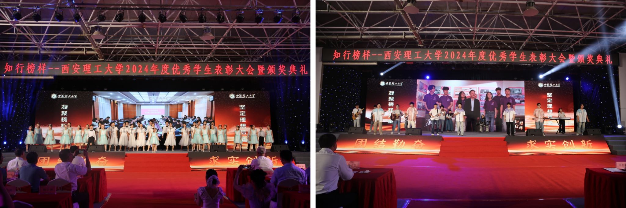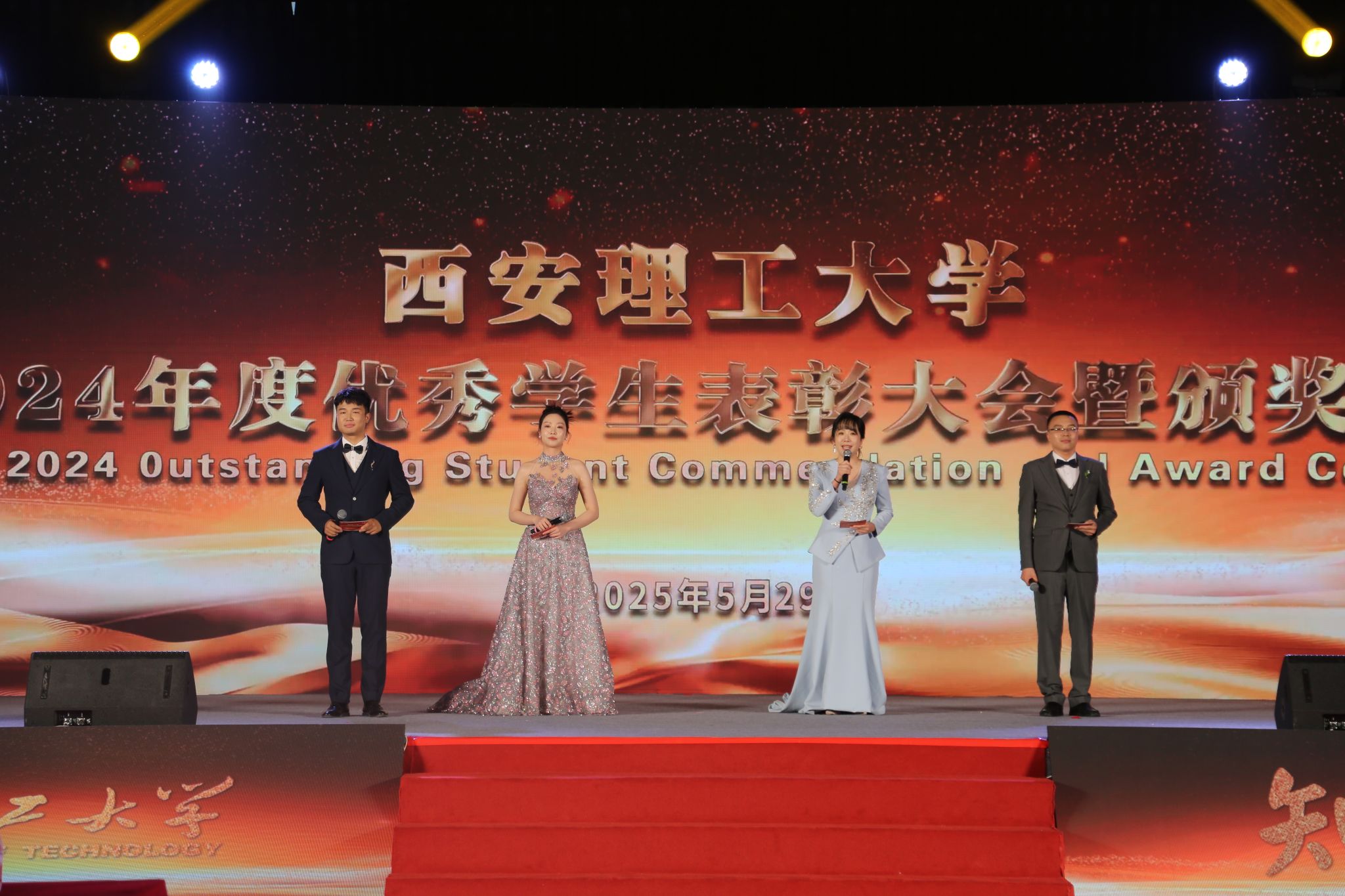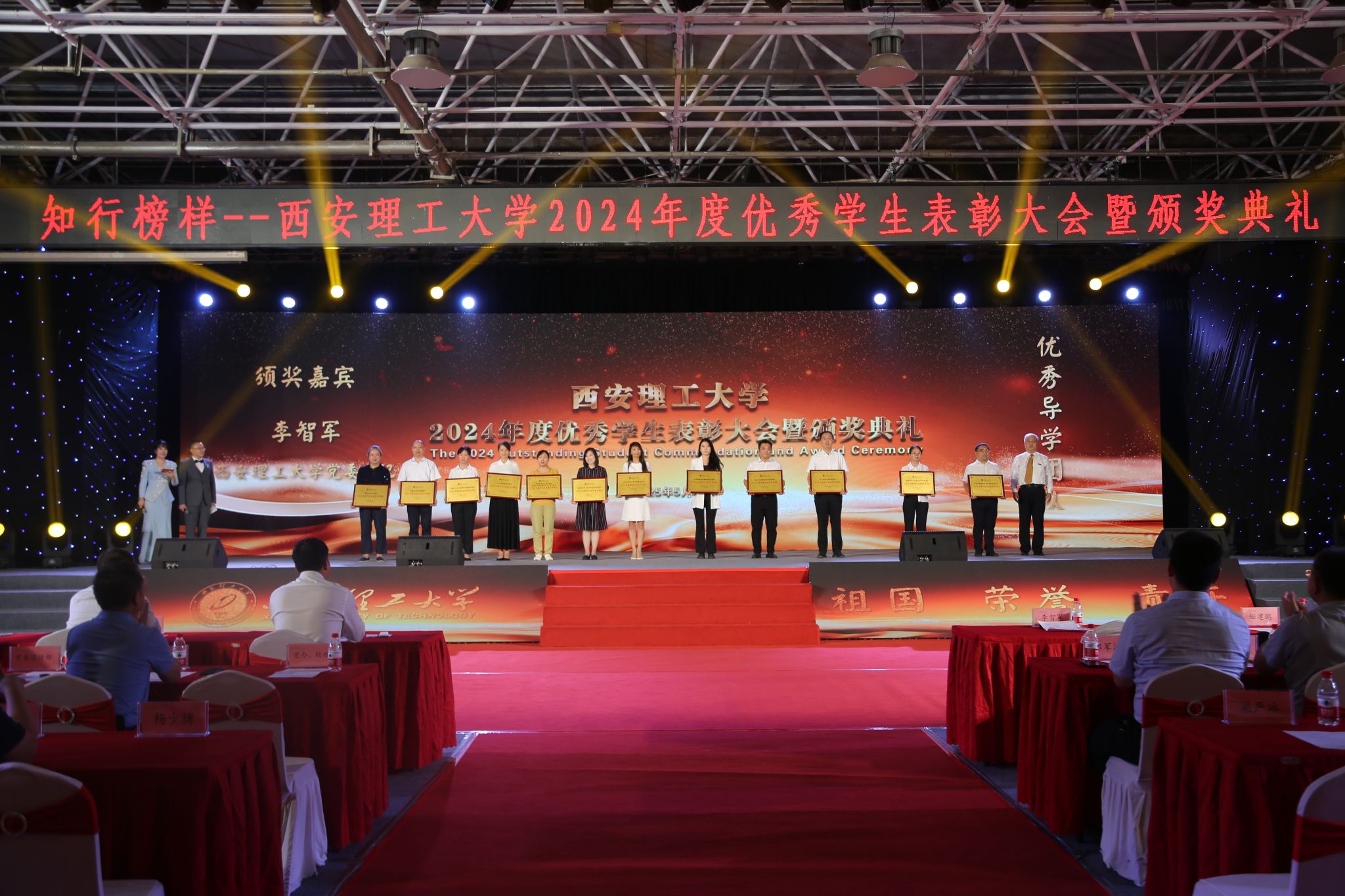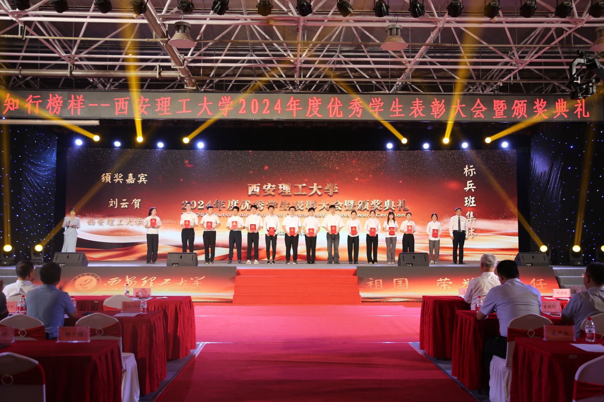 颁奖典礼以学生荣誉评价体系为依托,将榜样教育、感恩教育、责任教育、激励教育等融入其中,表彰了beat365官网上一年度在崇德向善、勤奋笃学、砥砺奋进、科技创新、服务社会等方面涌现出的先进集体和个人,通过事迹视频展播、分享成长故事、宣读颁奖词等环节充分展示了学校“三全育人”“五育融合”理念引领下的育人成果。典礼中,一个个感人至深的故事展现了西理工学子成长成才的奋斗历程,“德能并重,共勤共勉”“有书有爱有阳光”的图像处理导学团队,学习氛围浓厚、创新成果斐然、文化实践丰富的标兵班集体数据221班,退伍不褪色、深耕社会实践与志愿服务的中国大学生自强之星陈啟德,扎根水利科研、坚定科技报国志向、助力黄河生态治理保护的博士研究生韩谞,致力校园宣传、赋能青年思想引领和艺术浸润的“陕西好网民”高联博,学习成绩专业排名第一、热心服务同学的优秀学生干部标兵段嘉宜……他们用坚定信念和顽强拼搏诠释了“艰苦奋斗、自强不息”的学校精神,他们用实际行动践行着“祖国、荣誉、责任”的校训。