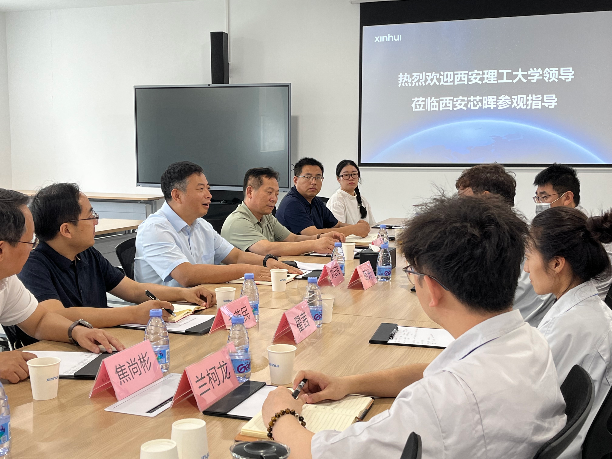 在西安芯晖设备技术有限公司,董事长葛光对刘云贺一行来访表示欢迎,并介绍了企业发展情况。刘云贺介绍了学校在学科建设、人才培养及科技创新方面的成果,他强调,推动教育、科技、人才“三位一体”协同发展是服务国家战略的关键,期待校企双方在前期合作基础上,进一步创新校企互动模式:深化科研合作与成果转化,聚焦相关领域联合攻关;构建人才共享机制,探索柔性引才;优化协同育人体系,将产业前沿融入教学实践,精准输送高素质人才。