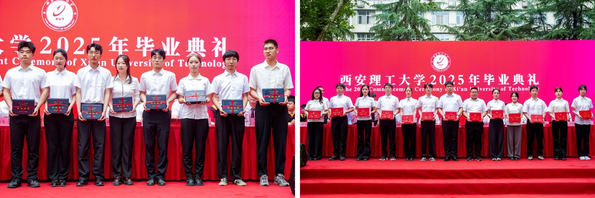 毕业典礼上,黑新宏宣读《2025届研究生毕业决定》《2025届本科生毕业决定》,张存库宣读《关于表彰2025年赴基层、藏疆地区就业毕业生的决定》,与会领导为2025届毕业生代表颁发毕业证书、学位证书,李智军为赴基层、藏疆地区就业学生代表颁发“就业先锋”证书,为“西部计划”志愿者代表授旗,张晓晖宣读《2025届毕业生校友联络员聘任决定》,与会领导为2025届毕业生校友联络员颁发聘书。