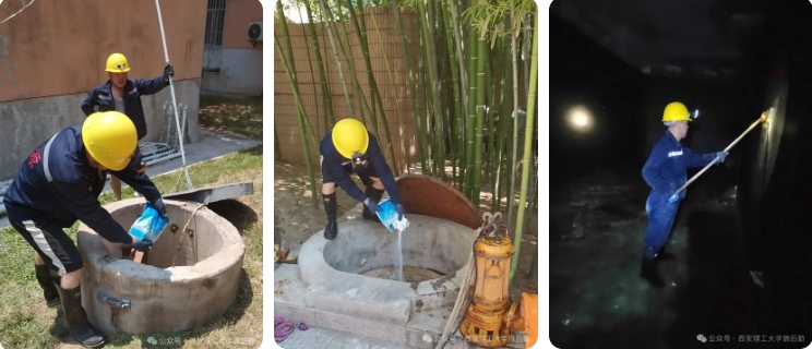 能源动力运转保障:用水安全是重中之重,组织人员对111楼、教三楼、西六楼、教四楼、教六楼水池、西四楼、西五楼、理工大厦及曲江校区所有水池进行全面清洗,从源头保障师生用水卫生安全。对教学楼公共区域54台、图书馆11台直饮水机进行维护、保养及滤芯更换,确保饮用水洁净健康。暑期期间始终安排专人值班在岗,做好开水供应及学生公寓售电工作。