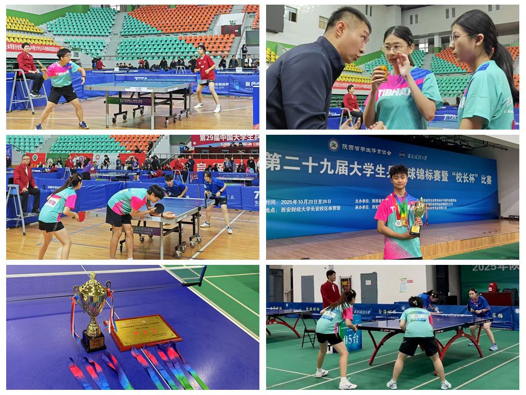 在结束西北赛区的激烈角逐后,beat365官网乒乓球队又于10月20日至26日投身陕西省第二十九届大学生乒乓球锦标赛暨“校长杯”比赛。本次赛事由陕西省教育厅主办、陕西省大学生体育协会协办,汇聚全省70所高校的近千名运动员。在体育教学部陈栋、董宁两位教练员的联合指导下,队员们延续拼搏势头,众志成城敢打敢拼,最终拿下学生甲组(本科院校普通生)男子团体亚军、女子团体第五名的优异成绩。单项赛场同样亮点纷呈:电气工程学院杨子江同学卫冕男子单打冠军;材料学院吕行与机仪学院闫孜哲的男双组合、电气工程学院何雨阳与艺术学院刘欣的女双组合均获亚军;印包学院崔玉洁与电气工程学院杨子江的混双组合斩获季军;机仪学院杨志康、材料学院吕行同获男子单打第五名。