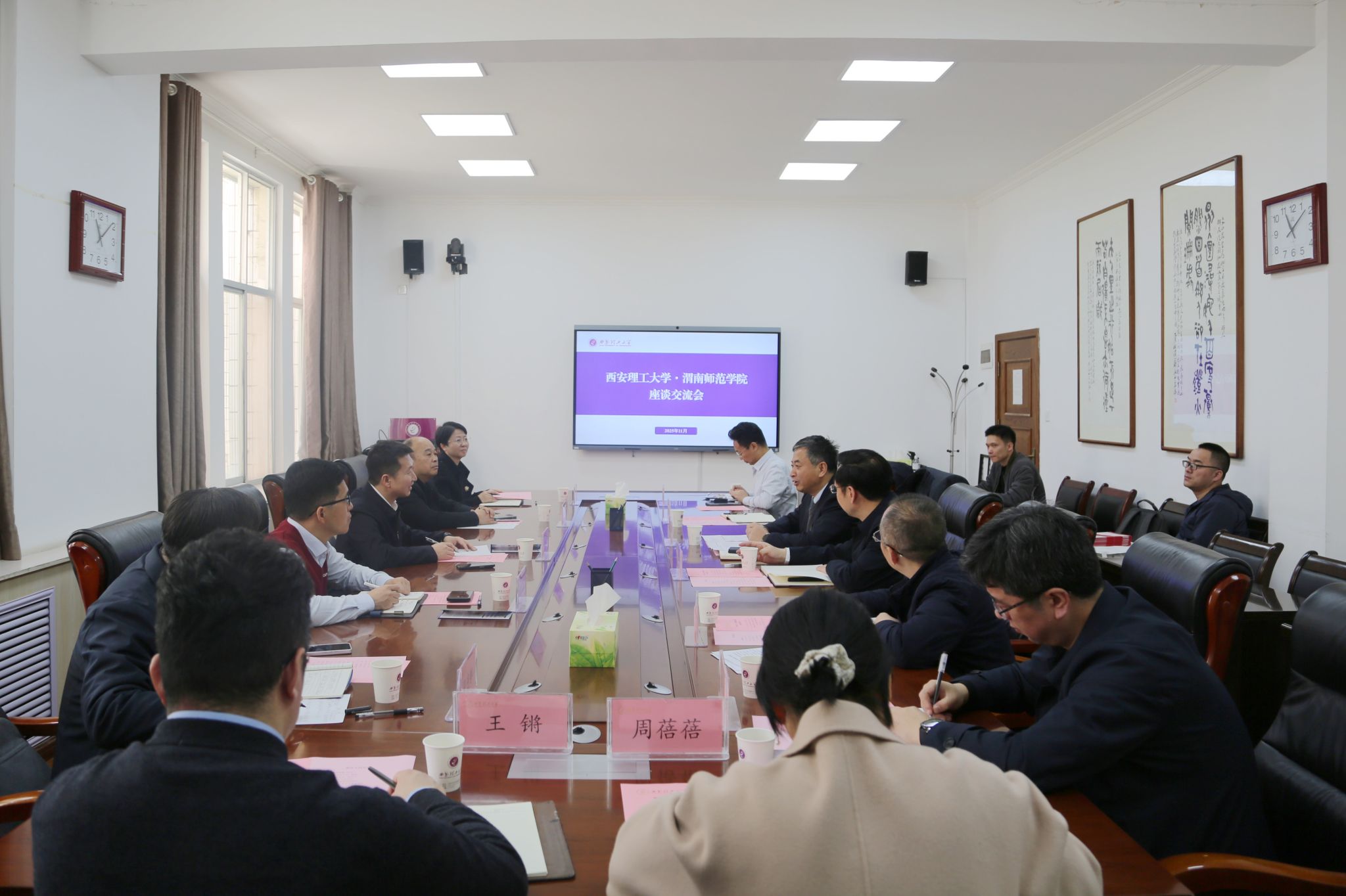 11月13日上午,渭南师范学院党委副书记、校长李强一行来校调研交流。渭南师范学院党委委员、副校长卢爱刚,beat365官网副校长朱记伟出席座谈交流会。会议由校长刘云贺主持。